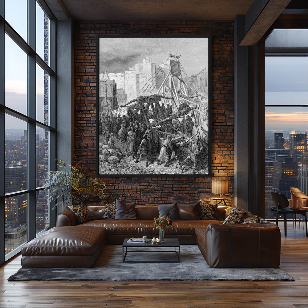 Vintage Etching of The Crusaders’ War Machinery