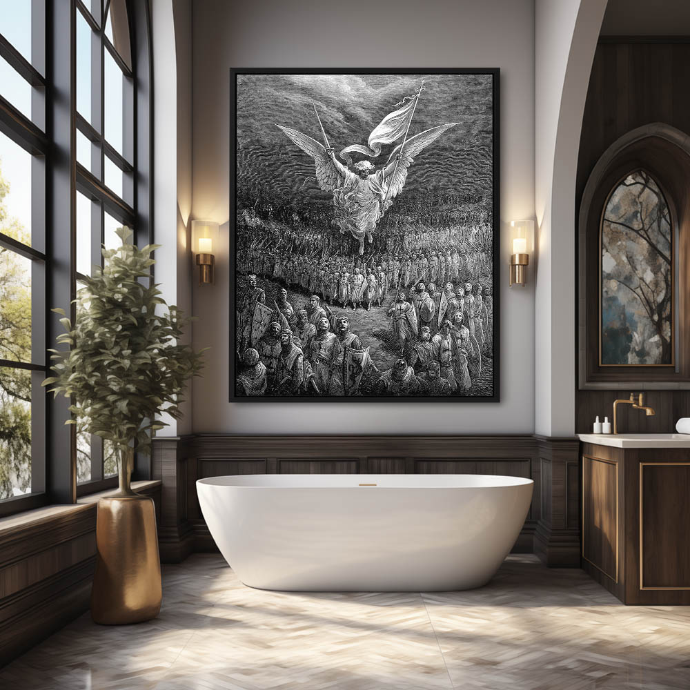 Vintage Etching of An angel leading the Crusaders to Jerusalem