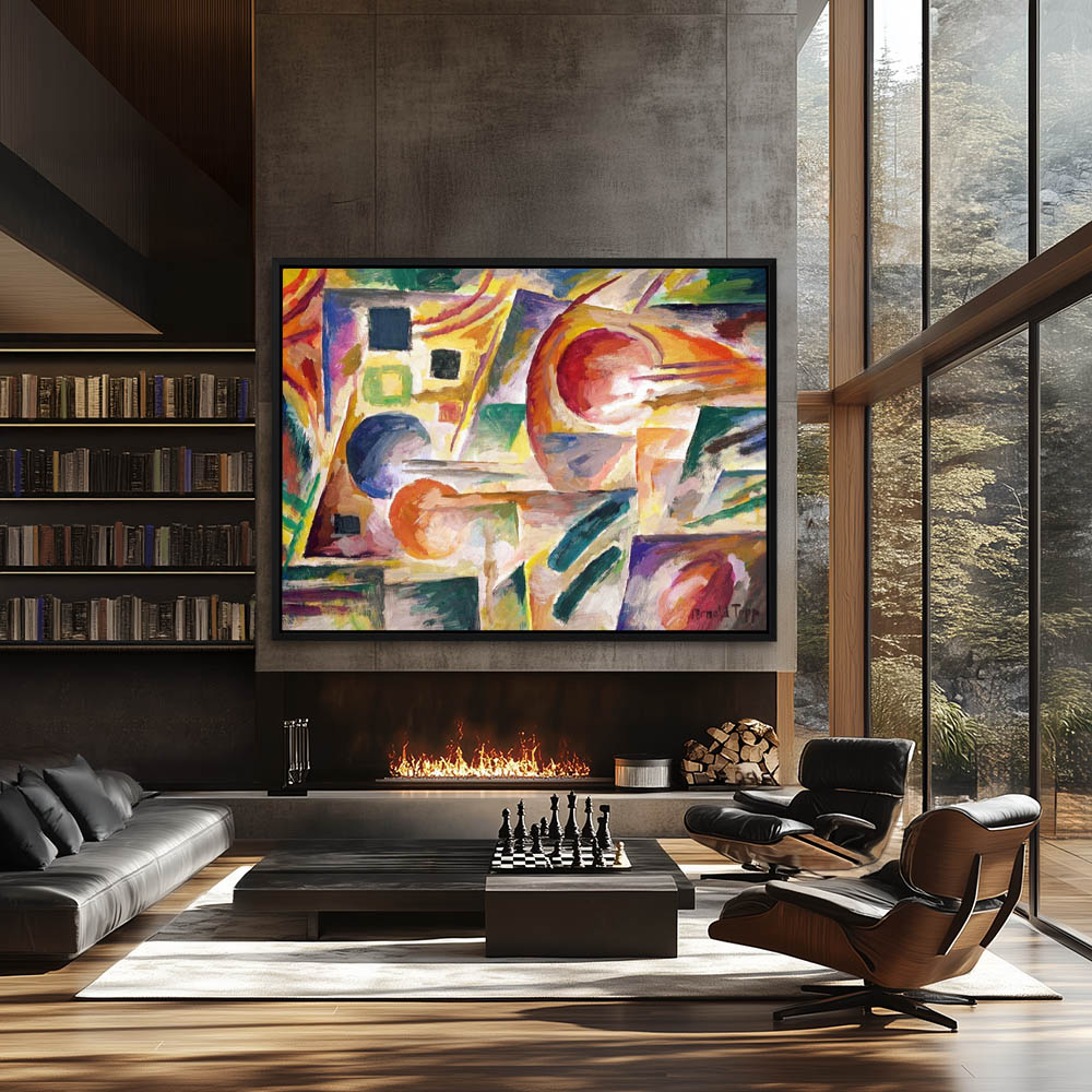 Abstract Landscape Painting of a Cityscape in Cubism