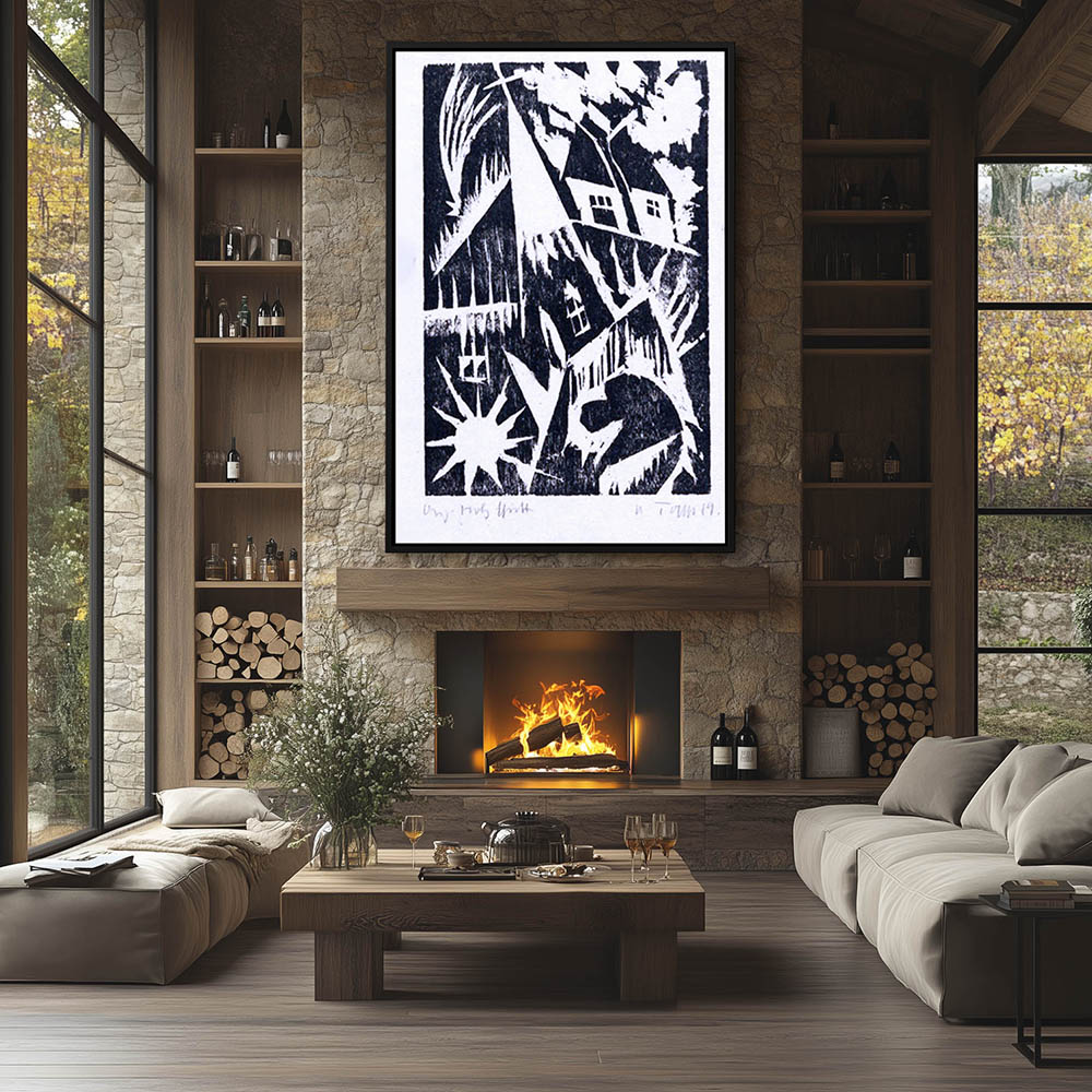Abstract Landscape Painting in Cubism in Black and White