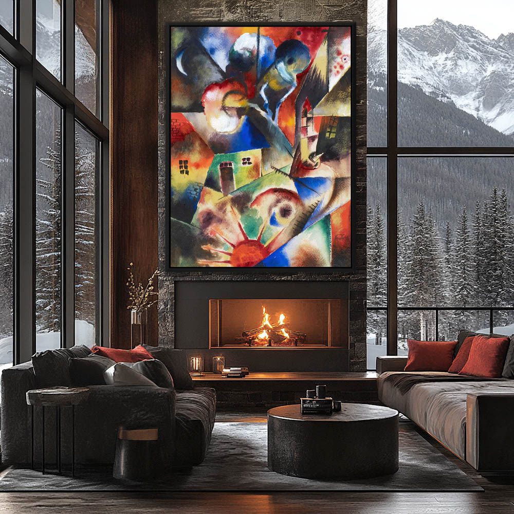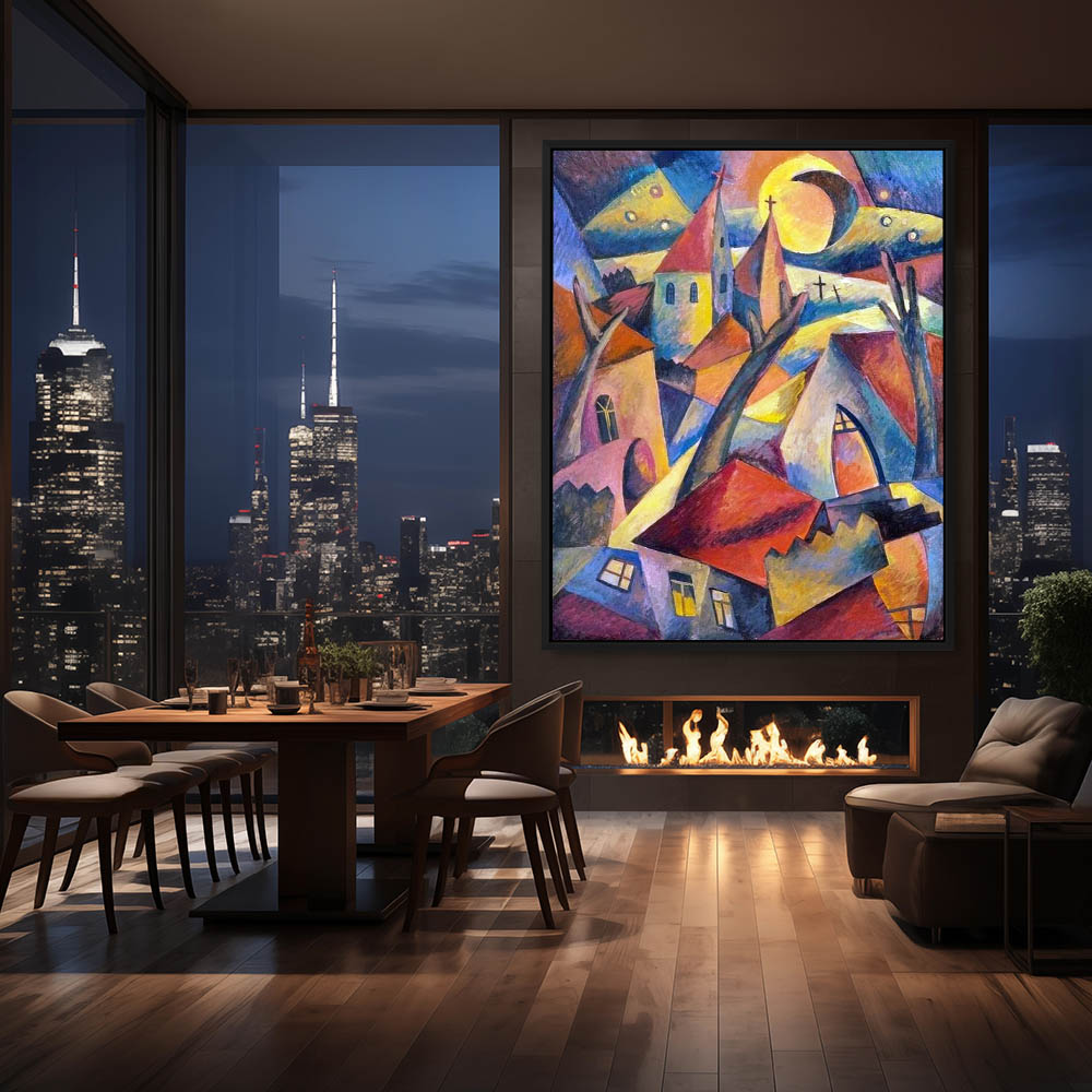 Abstract Landscape Painting with a Cityscape in Cubism