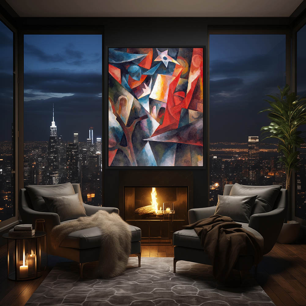 Abstract Painting of a Cityscape in Cubism