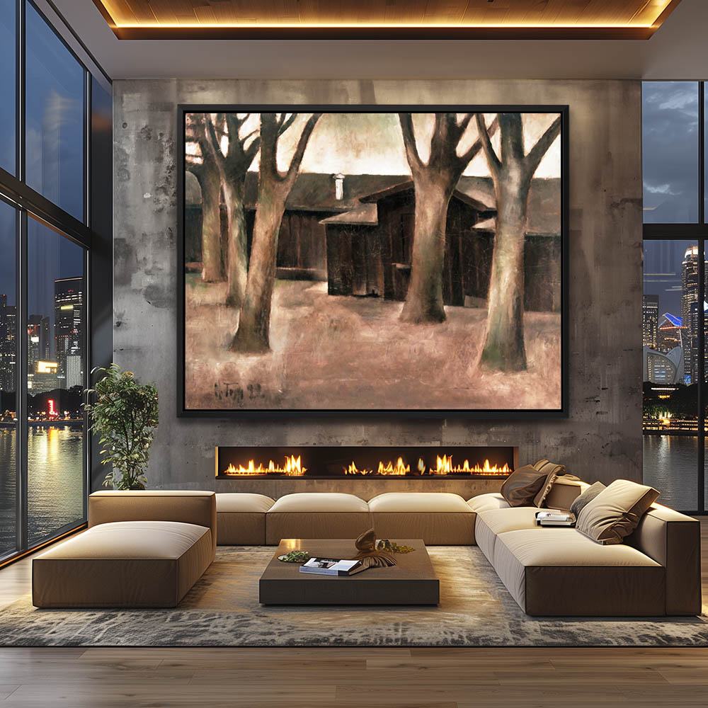 Landscape Painting with a House and Trees