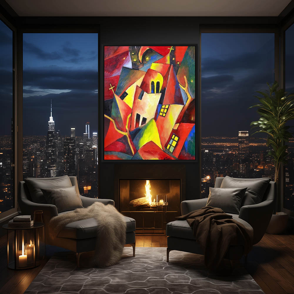 Abstract Painting of a Cityscape with Churches in Cubism