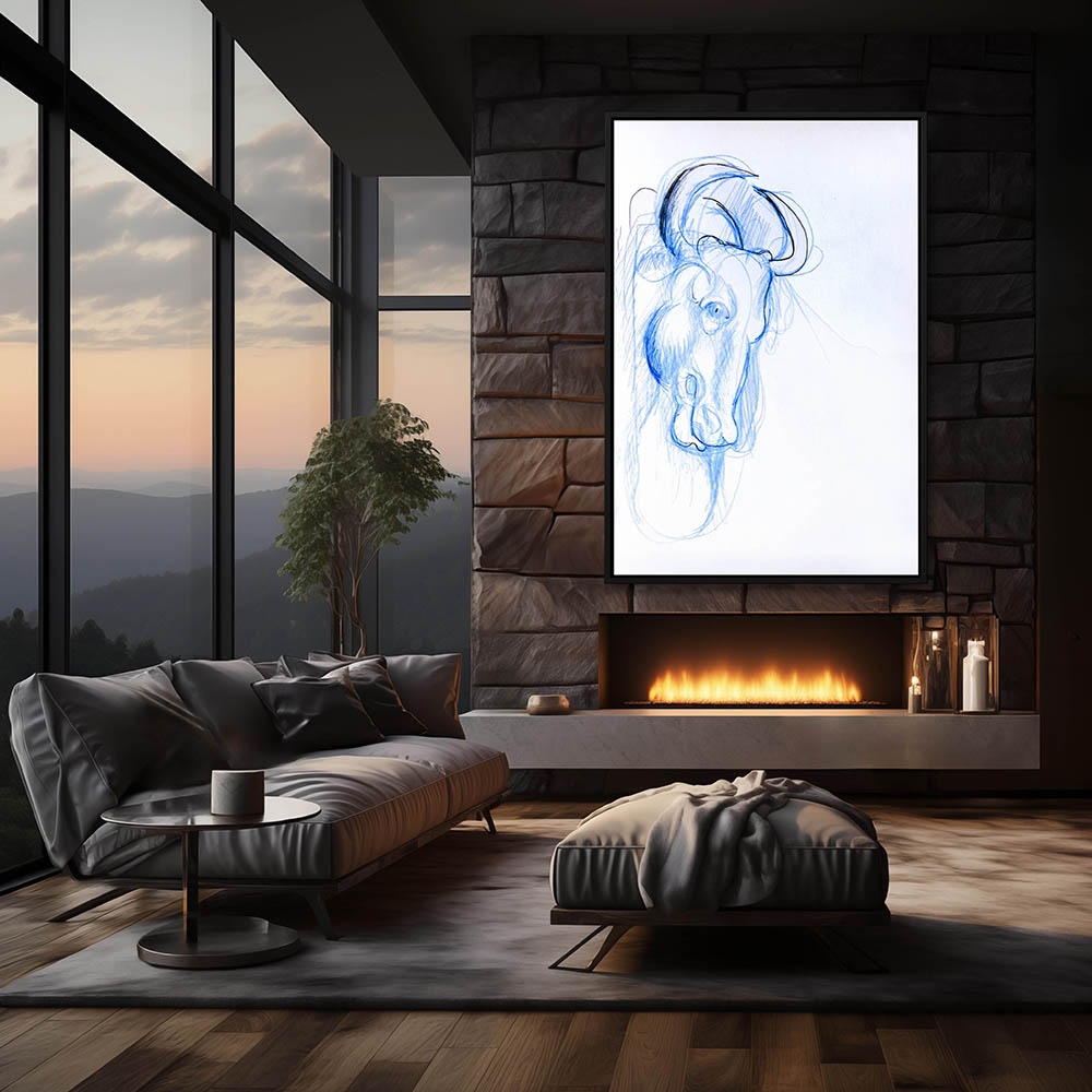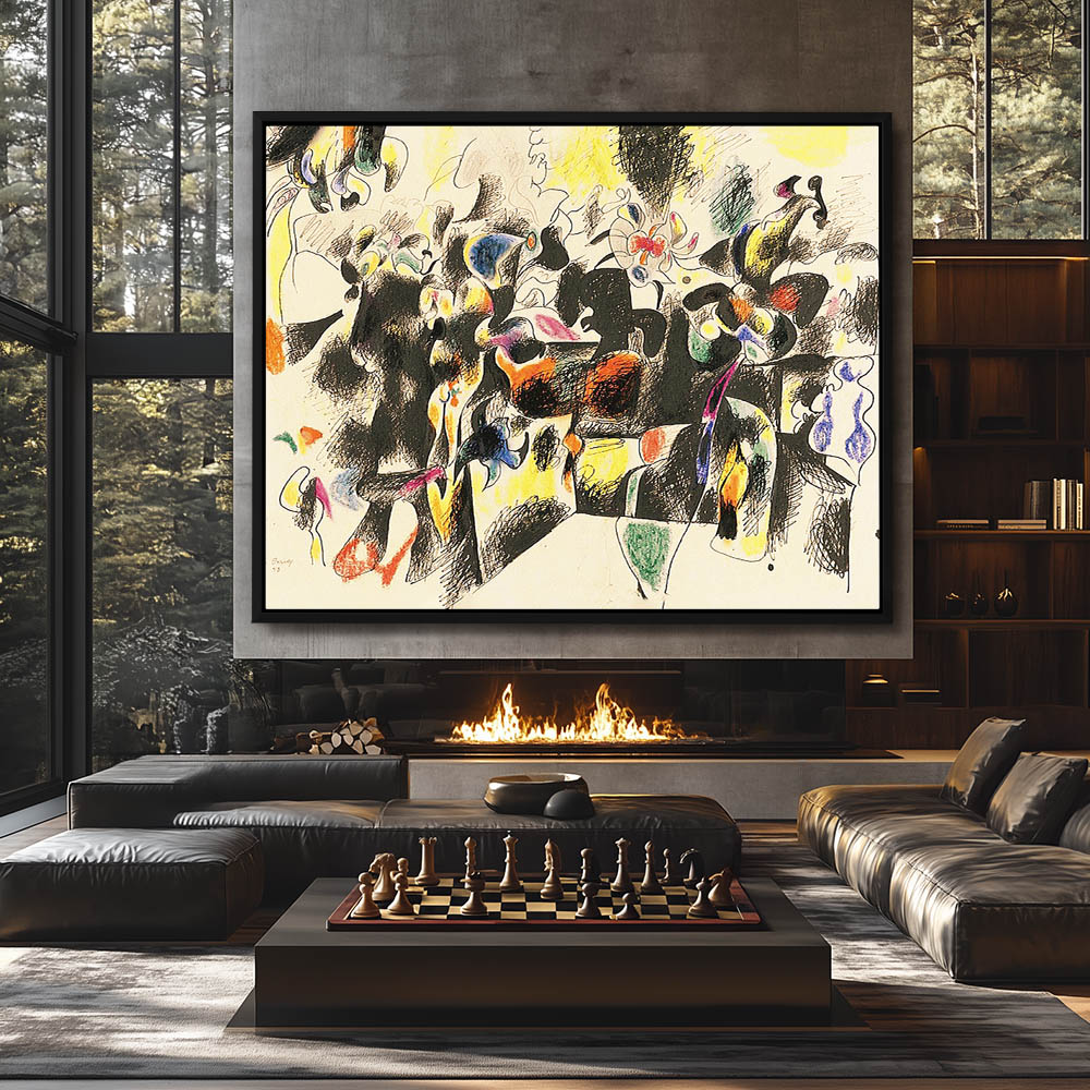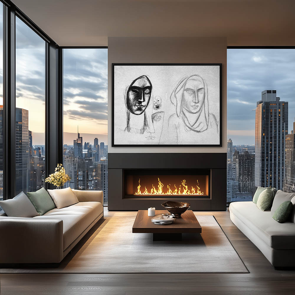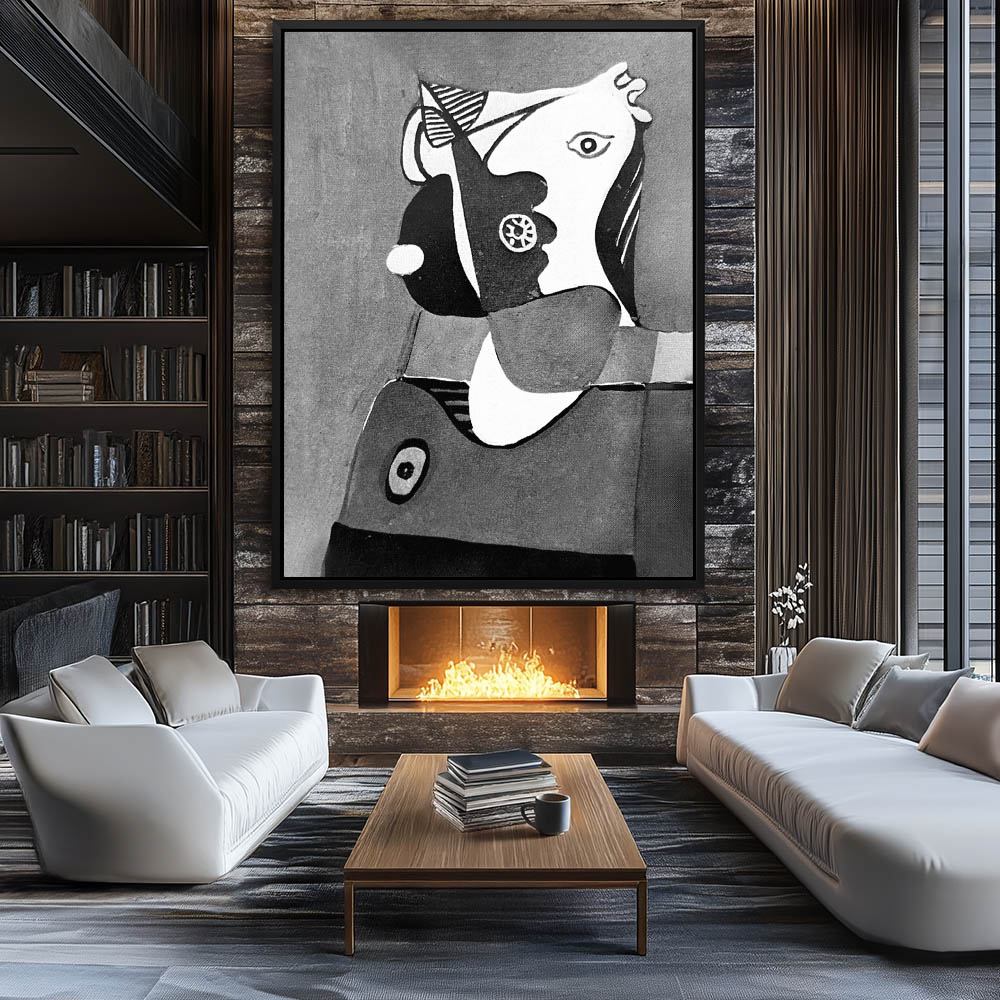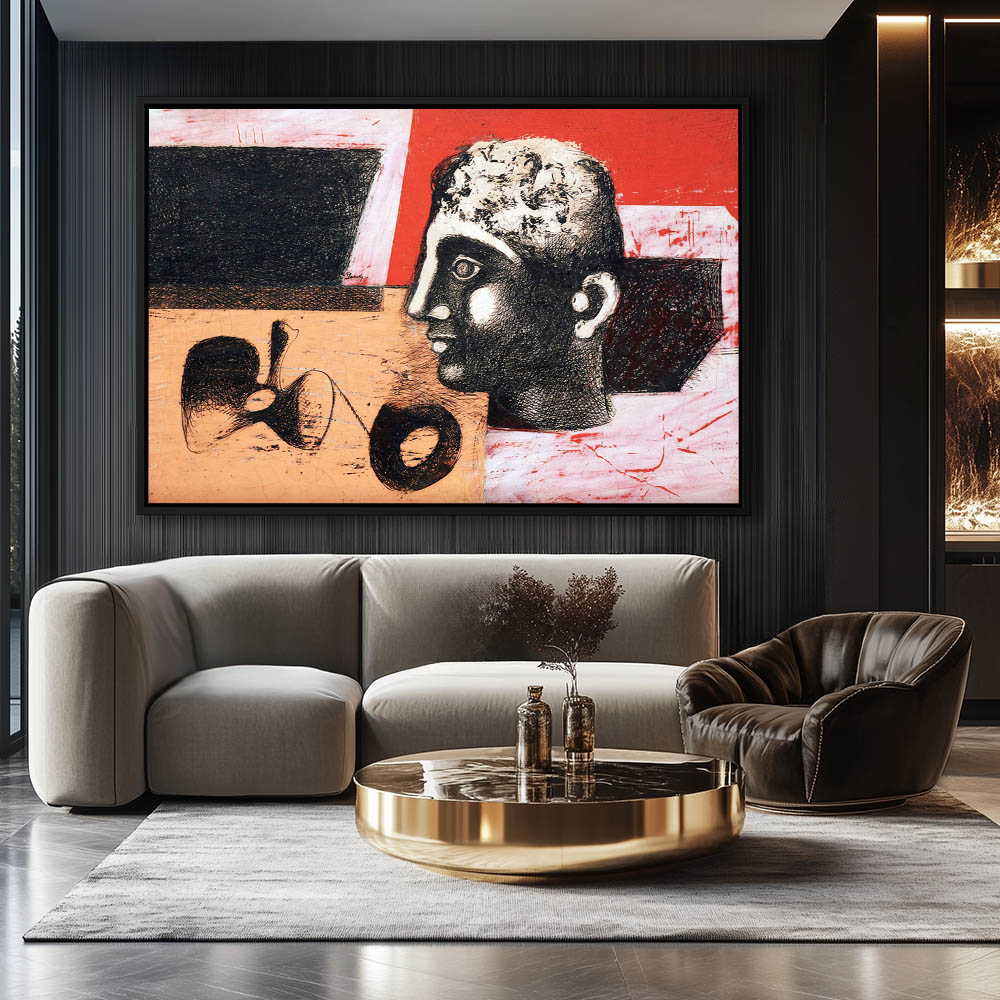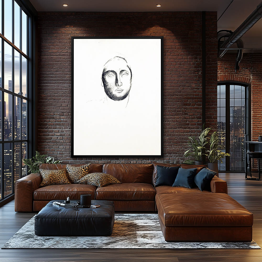 Abstract Expressionist Composition Painting of a Head in Black and White