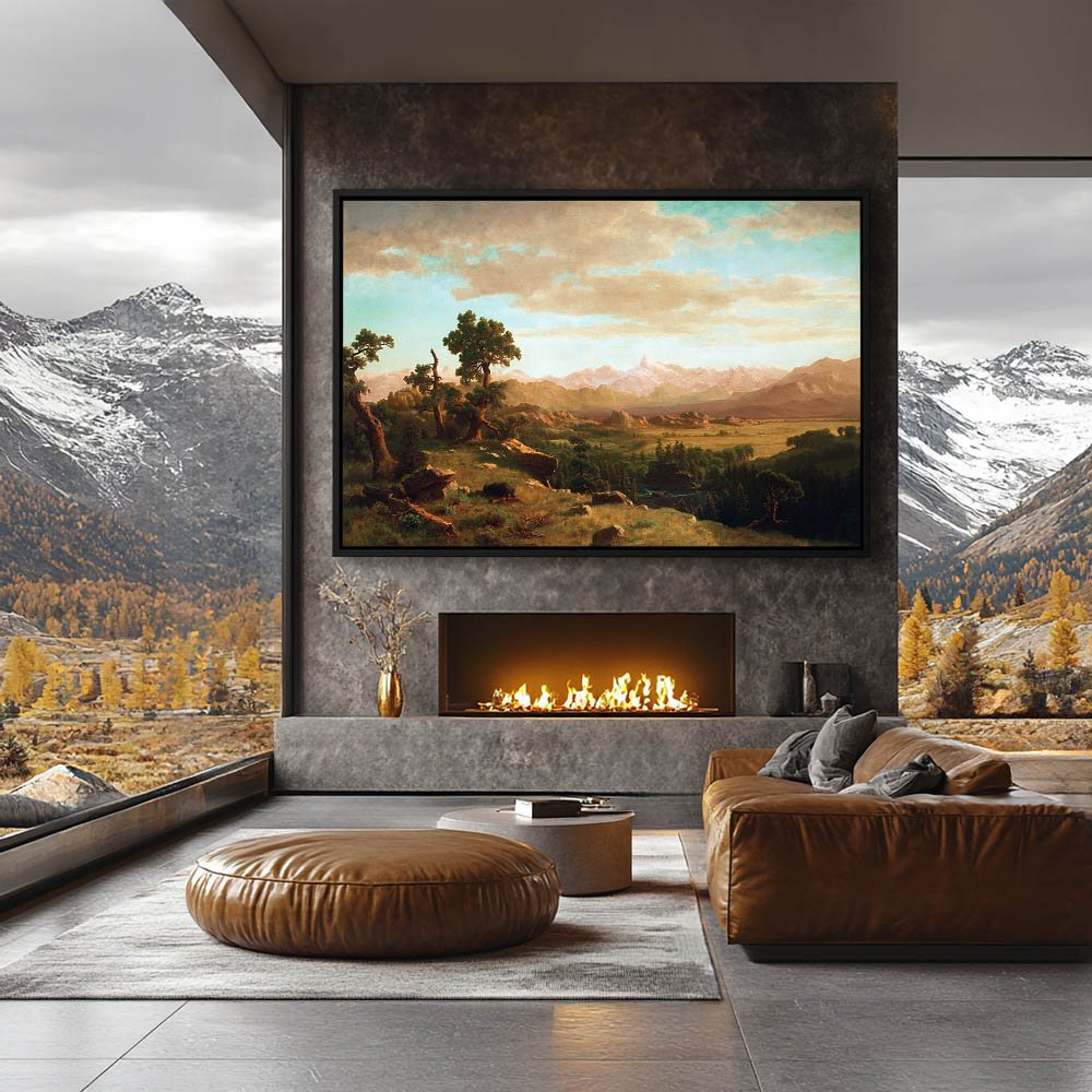 From $29.97A bear seen after taking down a deer on a rocky plateau overlooking the grassy countryside, a tree lined river and mountains dominating the horizon.