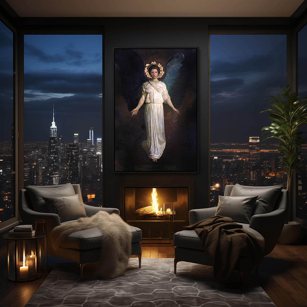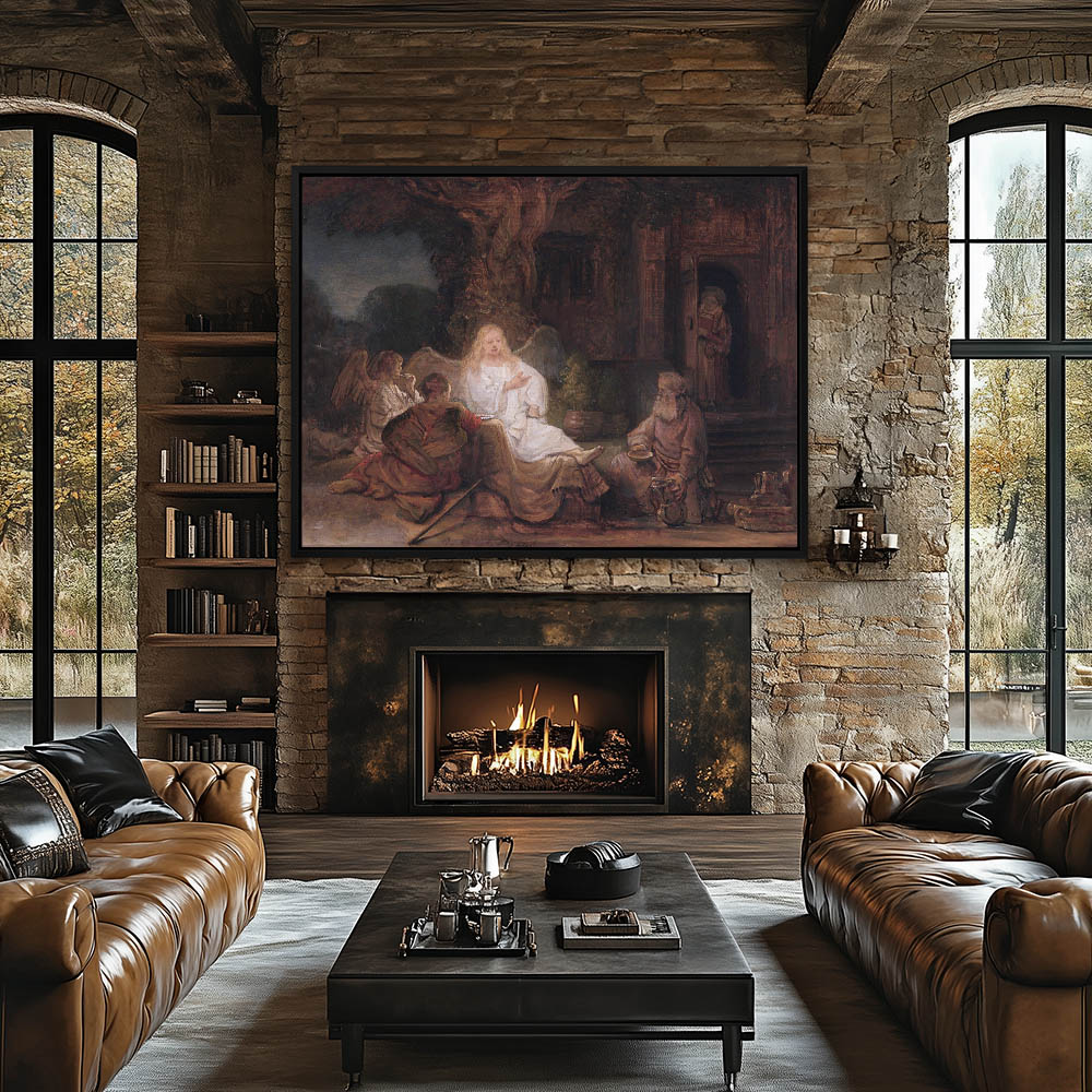 Realism Vintage Religious Painting of Abraham Serving the Angels a Biblical Story