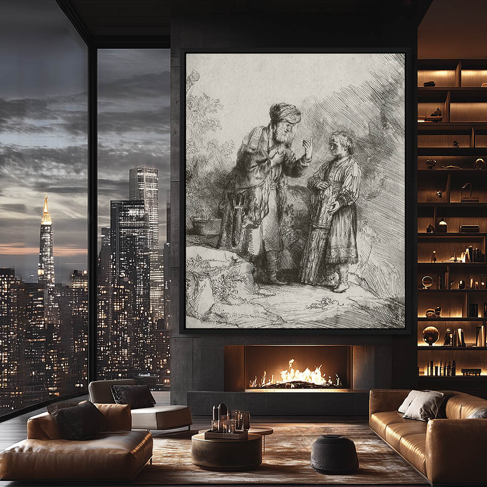 Religious Drawing of a Biblical Story with Abraham and Issac