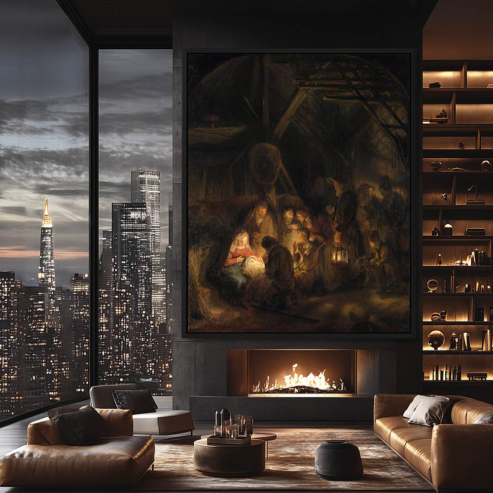 Realism Vintage Painting of a Religious Biblical Story The Nativity and Holy Family