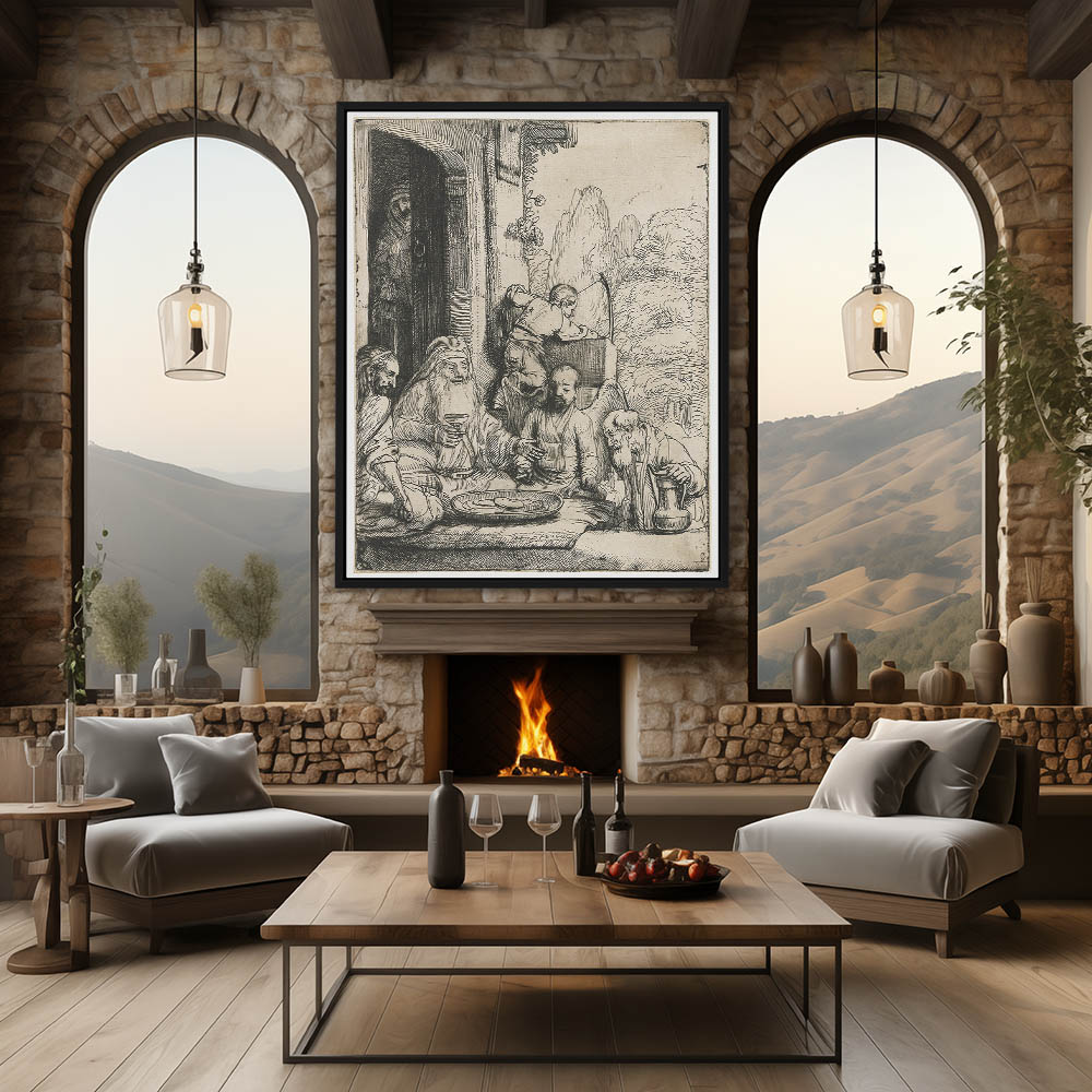 Religious Drawing Depiction of Abraham Feeding the three Angels