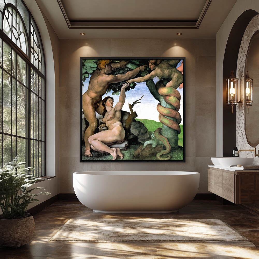 Vintage Nude Figurative Painting of Adam and Eve being tempted by the Snake