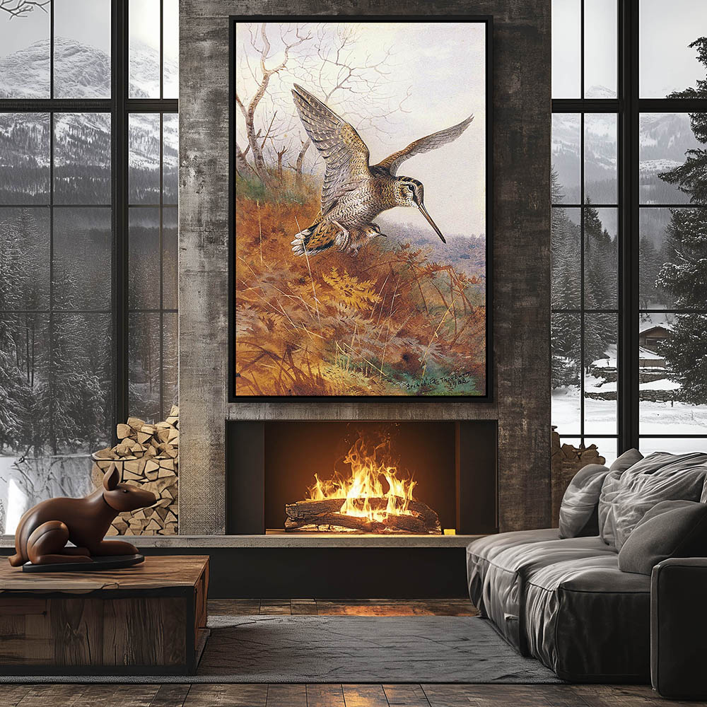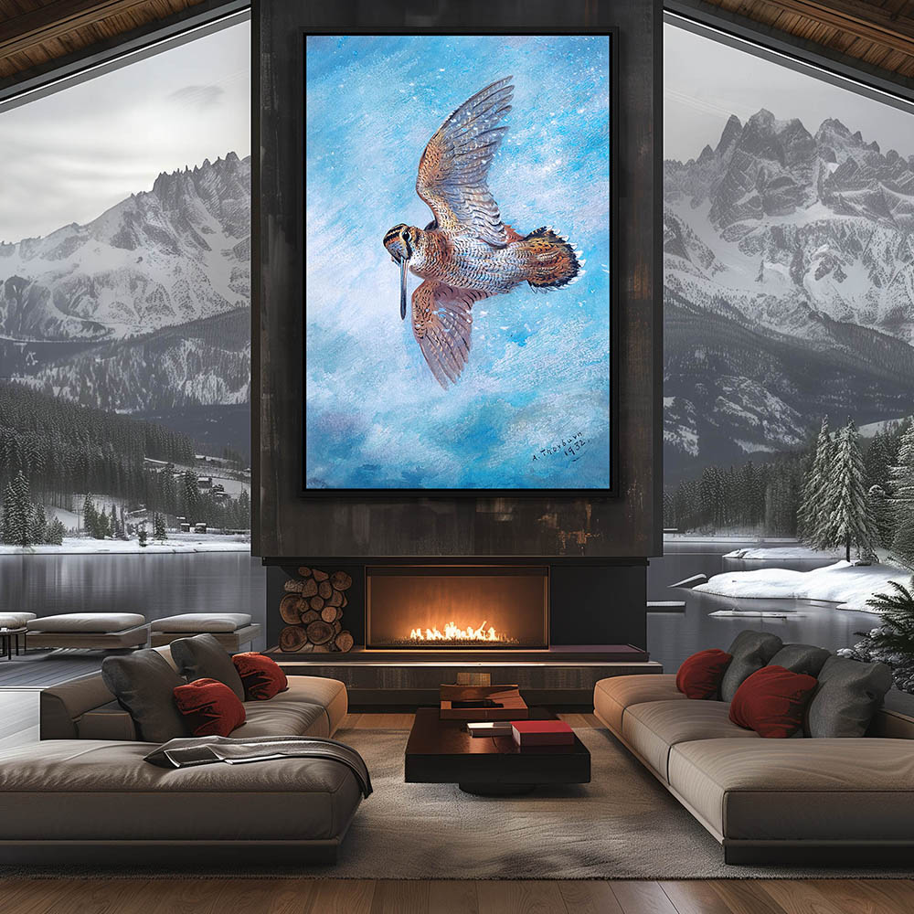 Painting of a Flying Woodcock in the Snow