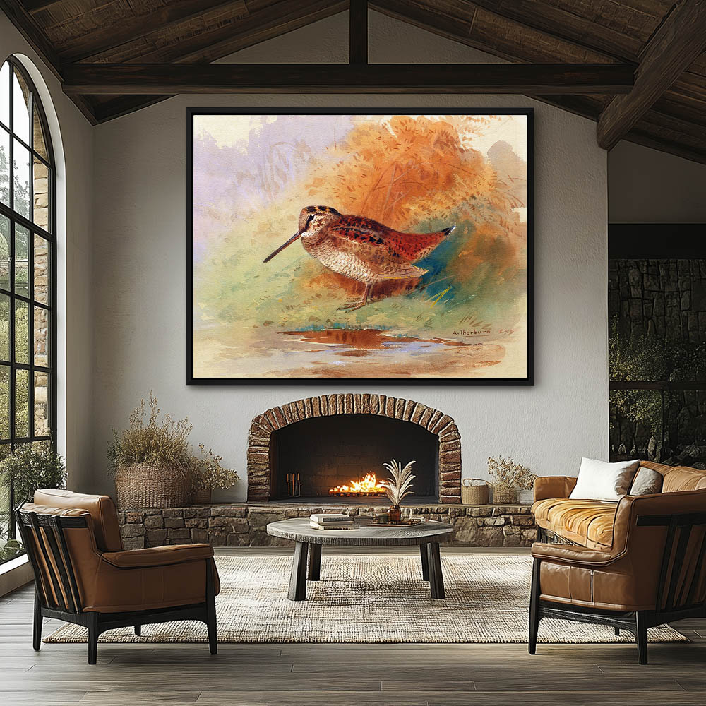 Painting of a Woodcock by a Puddle