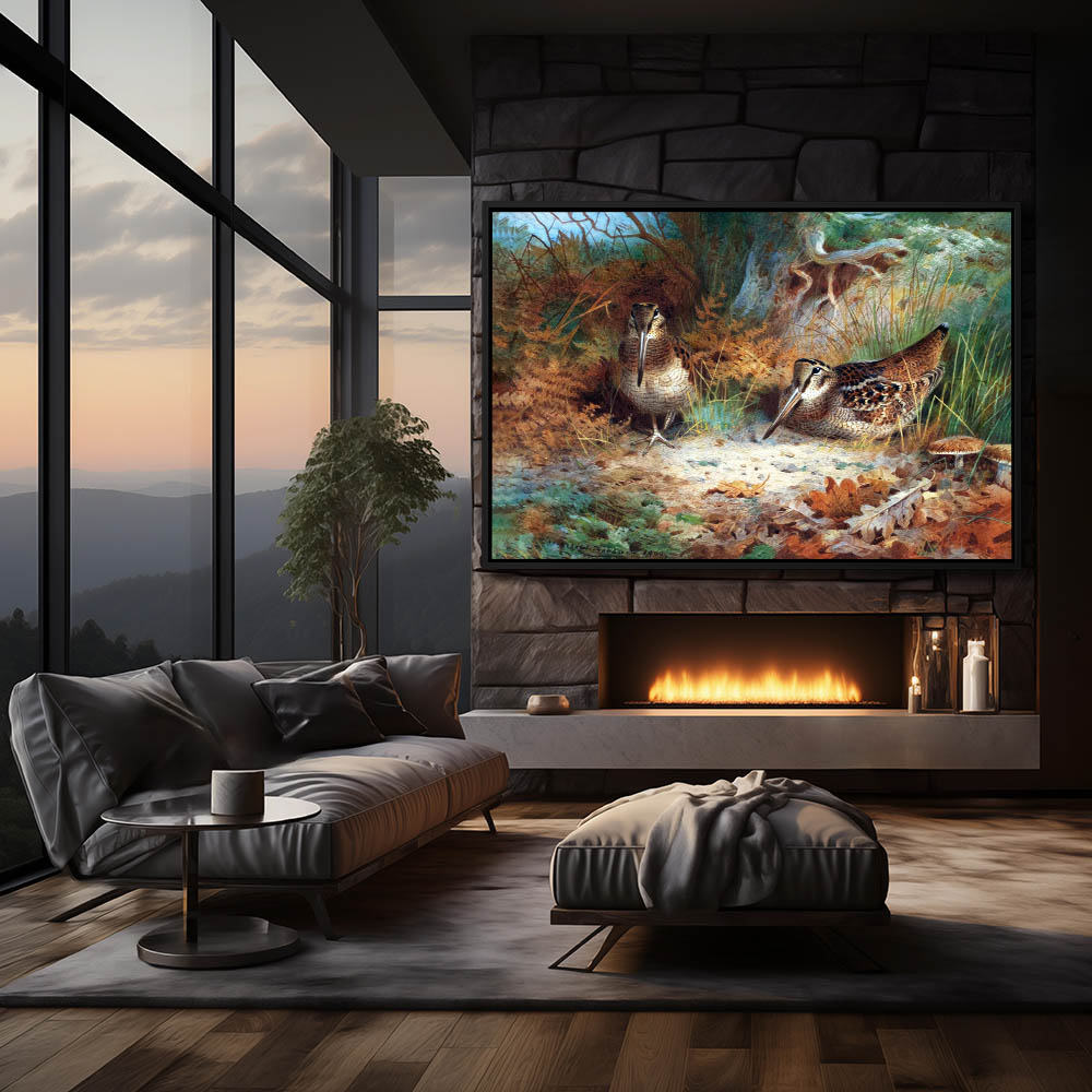 Painting of Woodcocks on the Forest Floor