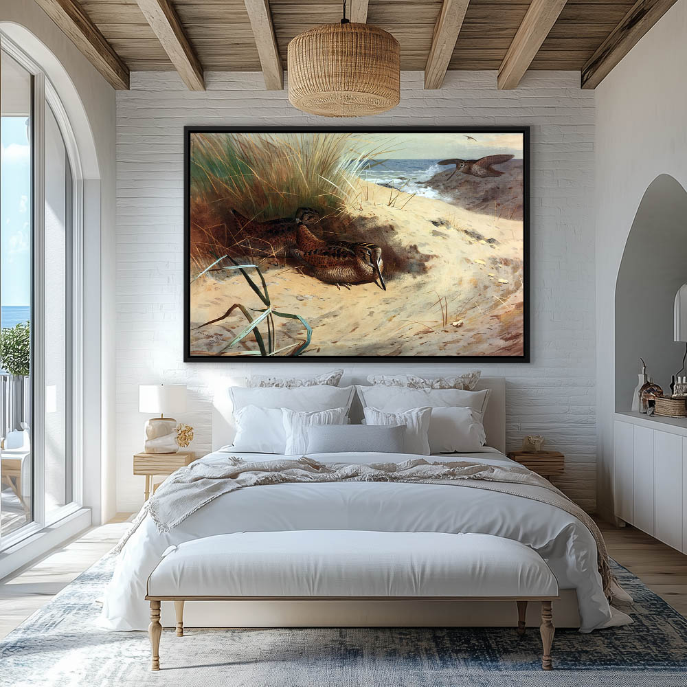 Painting of Woodcock Laying in the Sand Dunes on the Sea Shore