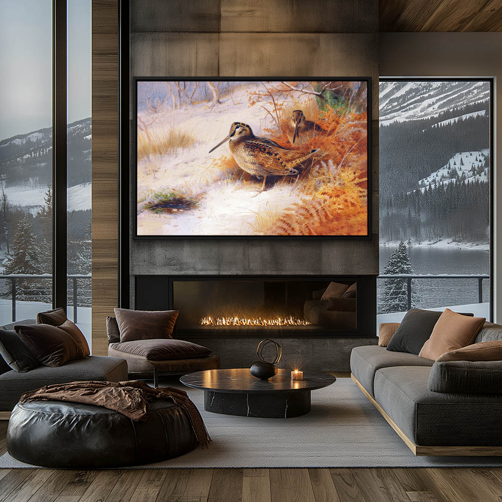 Painting of Two Woodcocks on the Snow