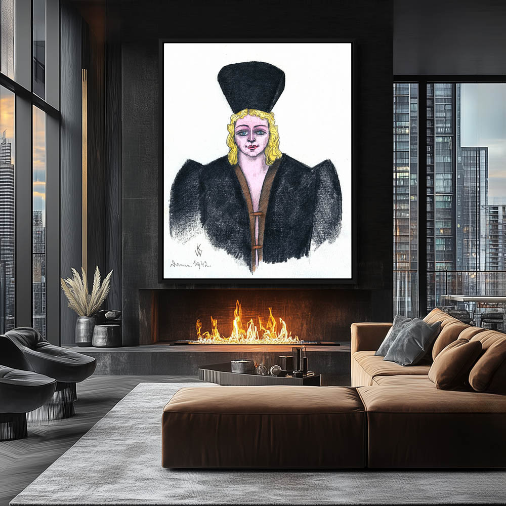 Portrait of a blong woman in a black hat and overcoat