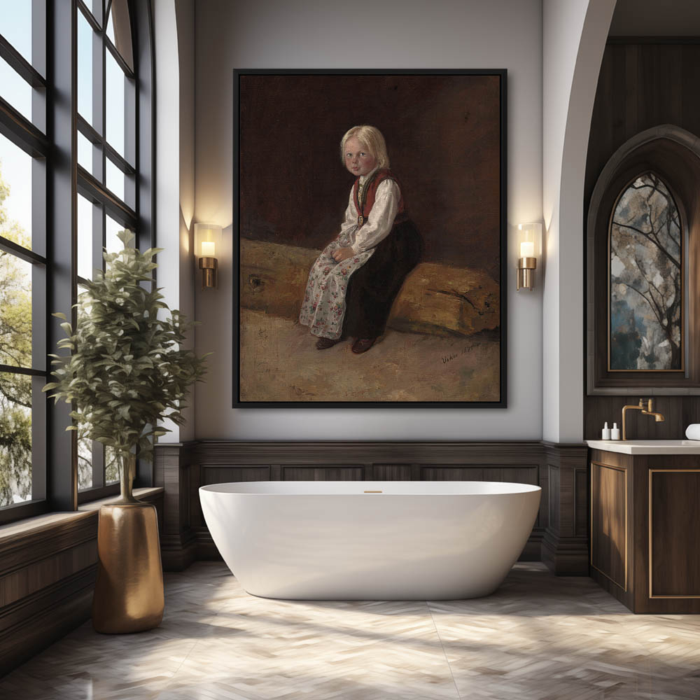 Portrait of a yound blong girl with floral apron