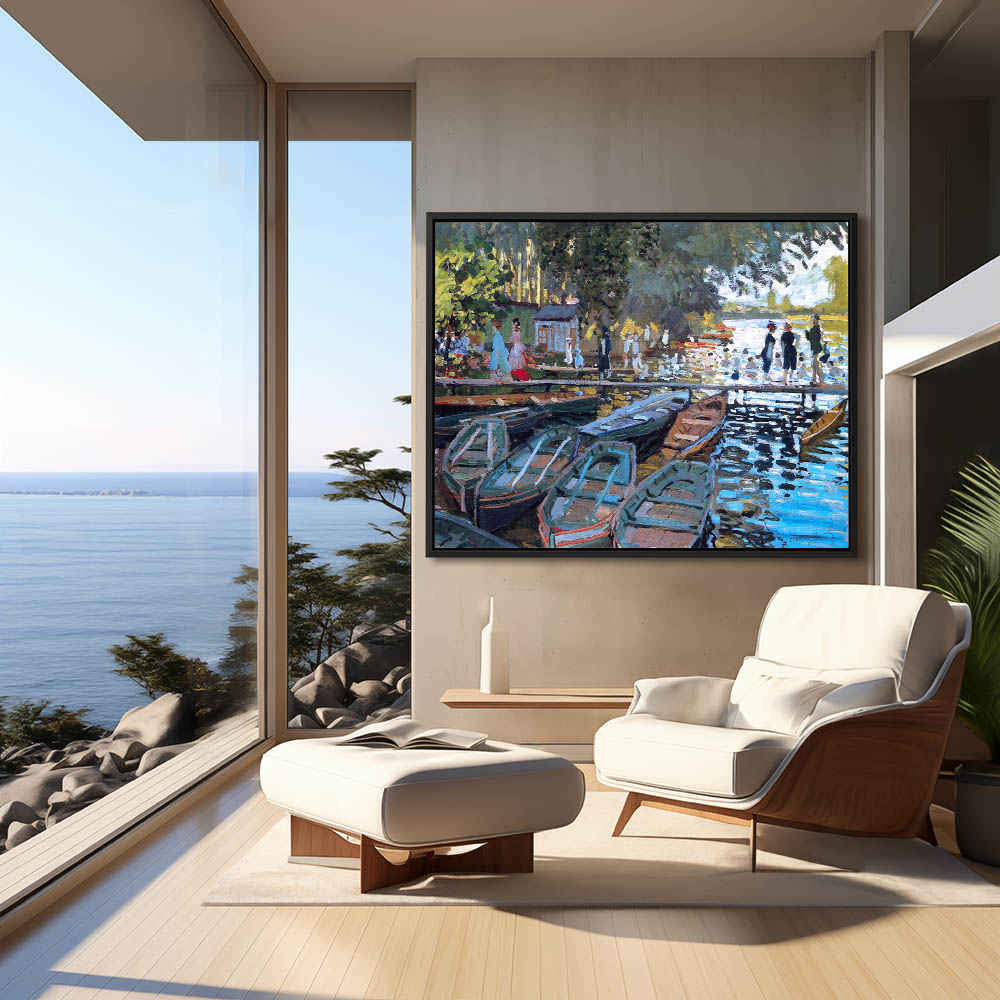 Vintage Seascape Painting with a Boat on Shore at Low Tide