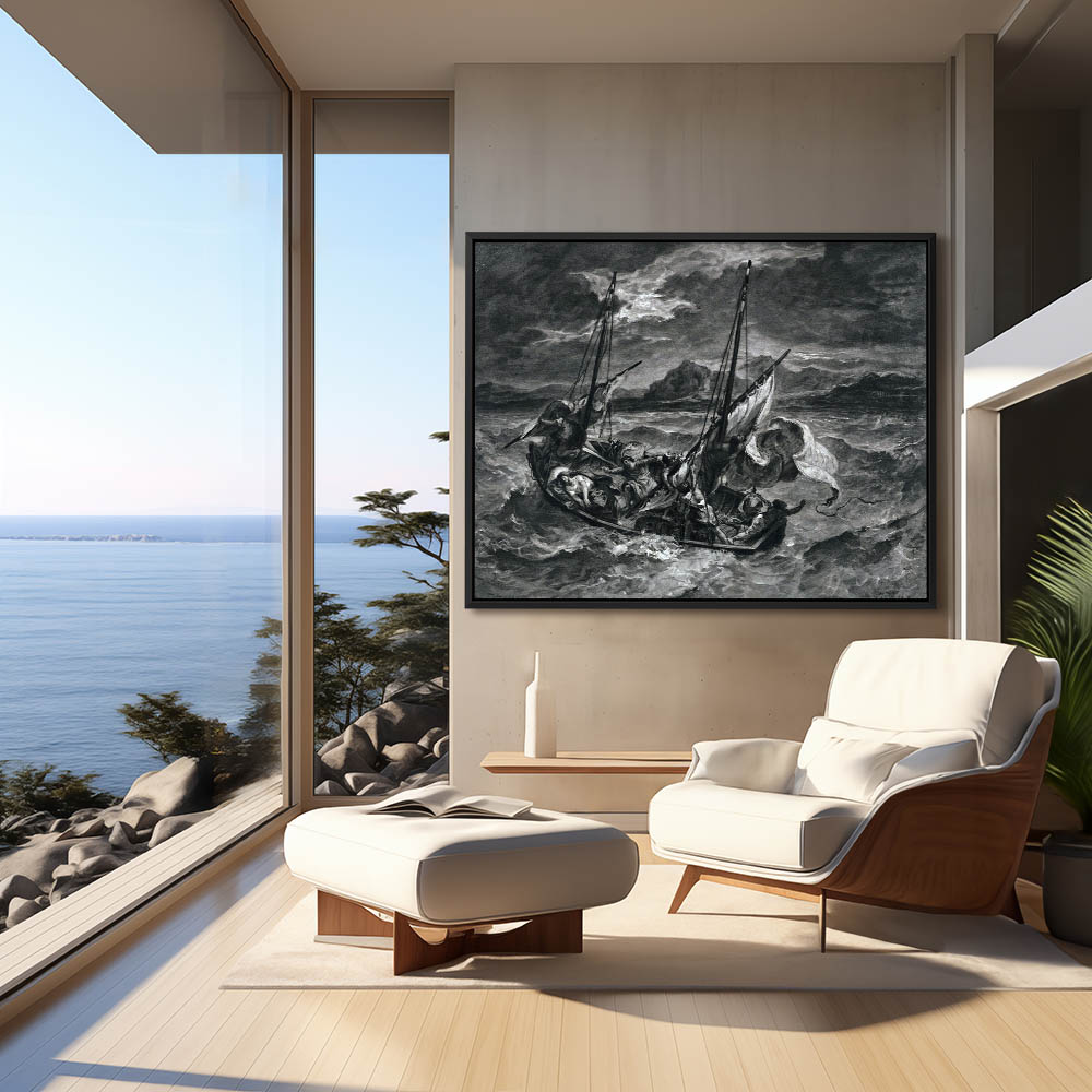 Vintage Religious Drawing of Jesus Christ on the Lake of Gennezaret