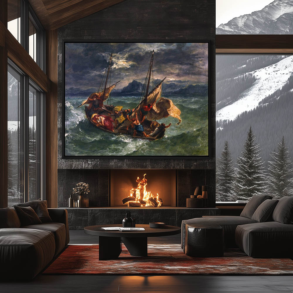 Vintage Religious Painting of Jesus Christ Asleep in the Boat on the Sea of Galilee