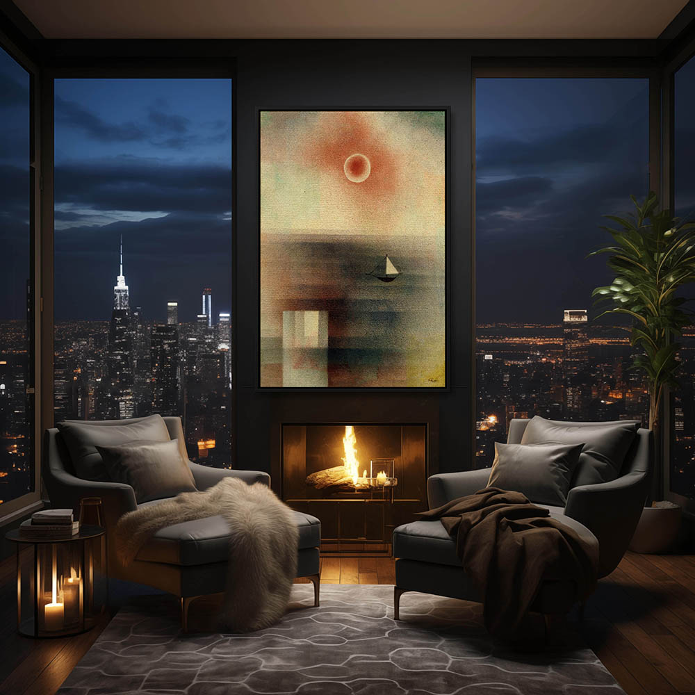 Abstract gradient seascape with a boat and the sun