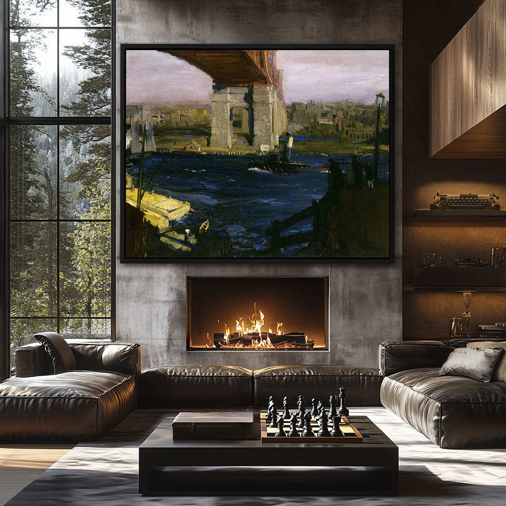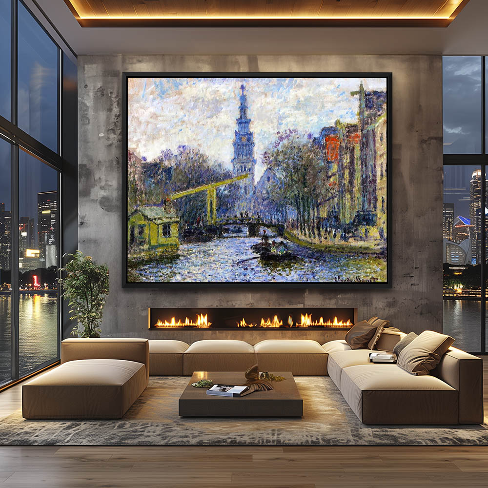 Vintage River Canal Painting of the Canal Flowing through a Cityscape