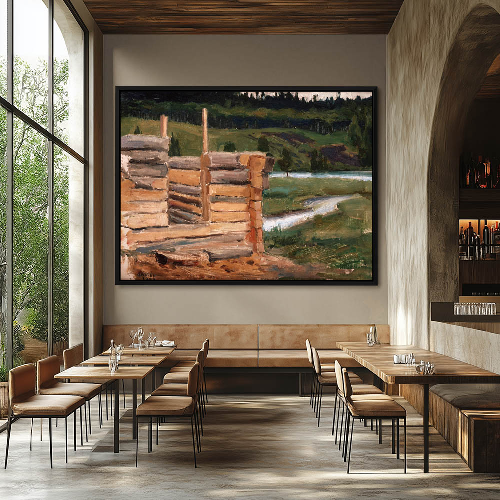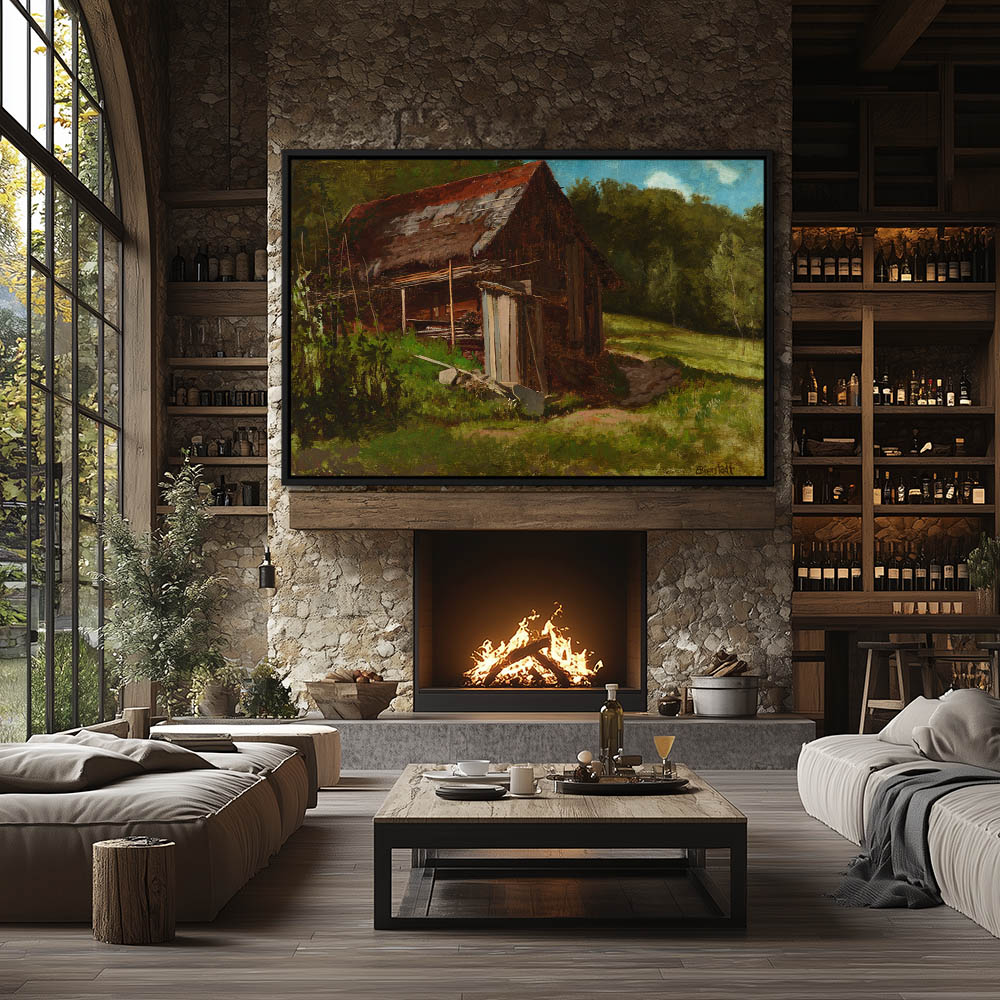 From $29.97Country Landscape Painting with a Cabin under Construction