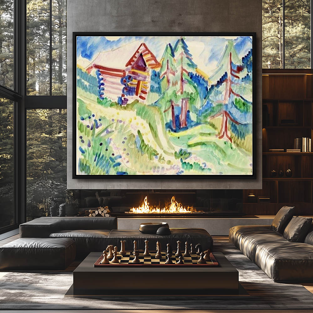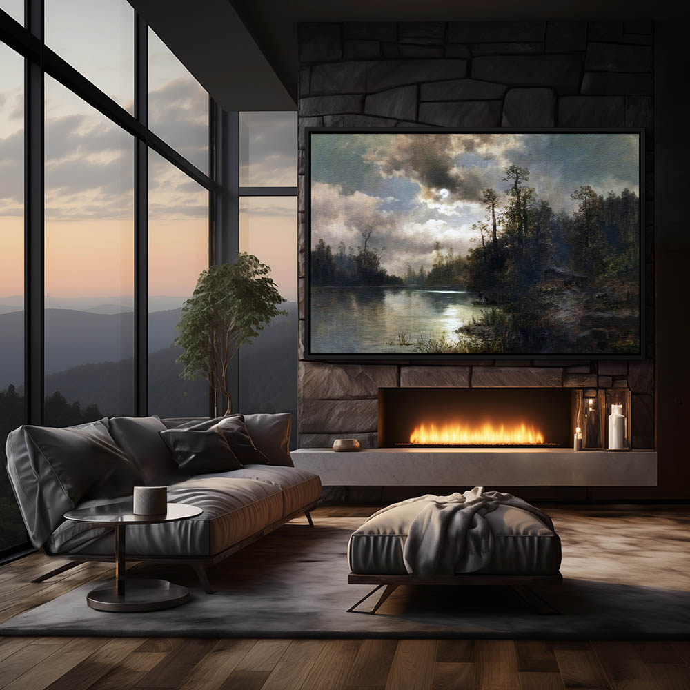 Beautiful Painting of a Cabin by a Stream for Home Wall Decor, Large Framed Canvas Wall Art