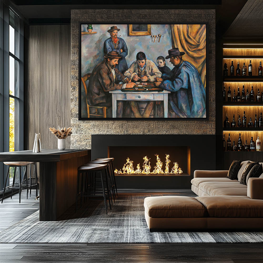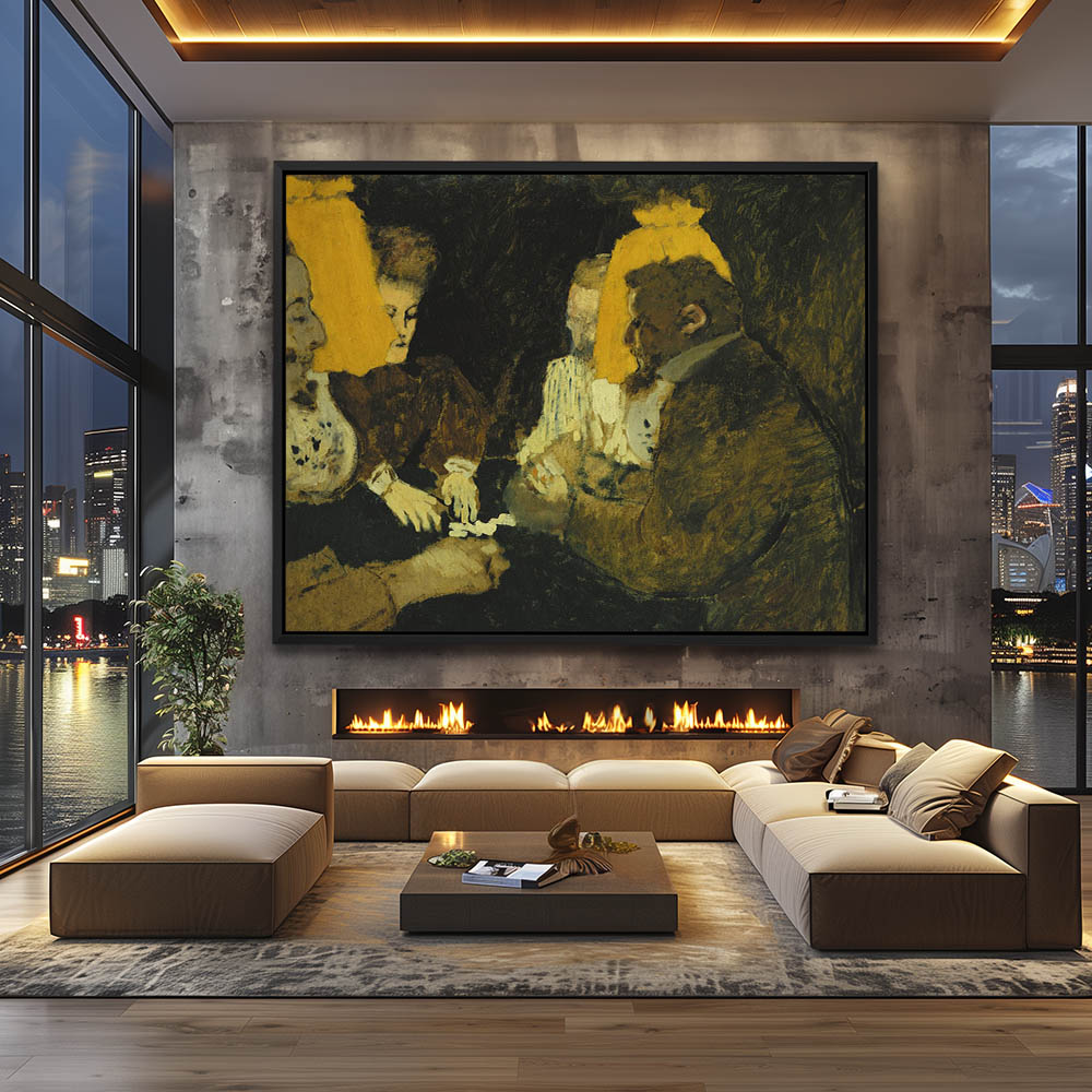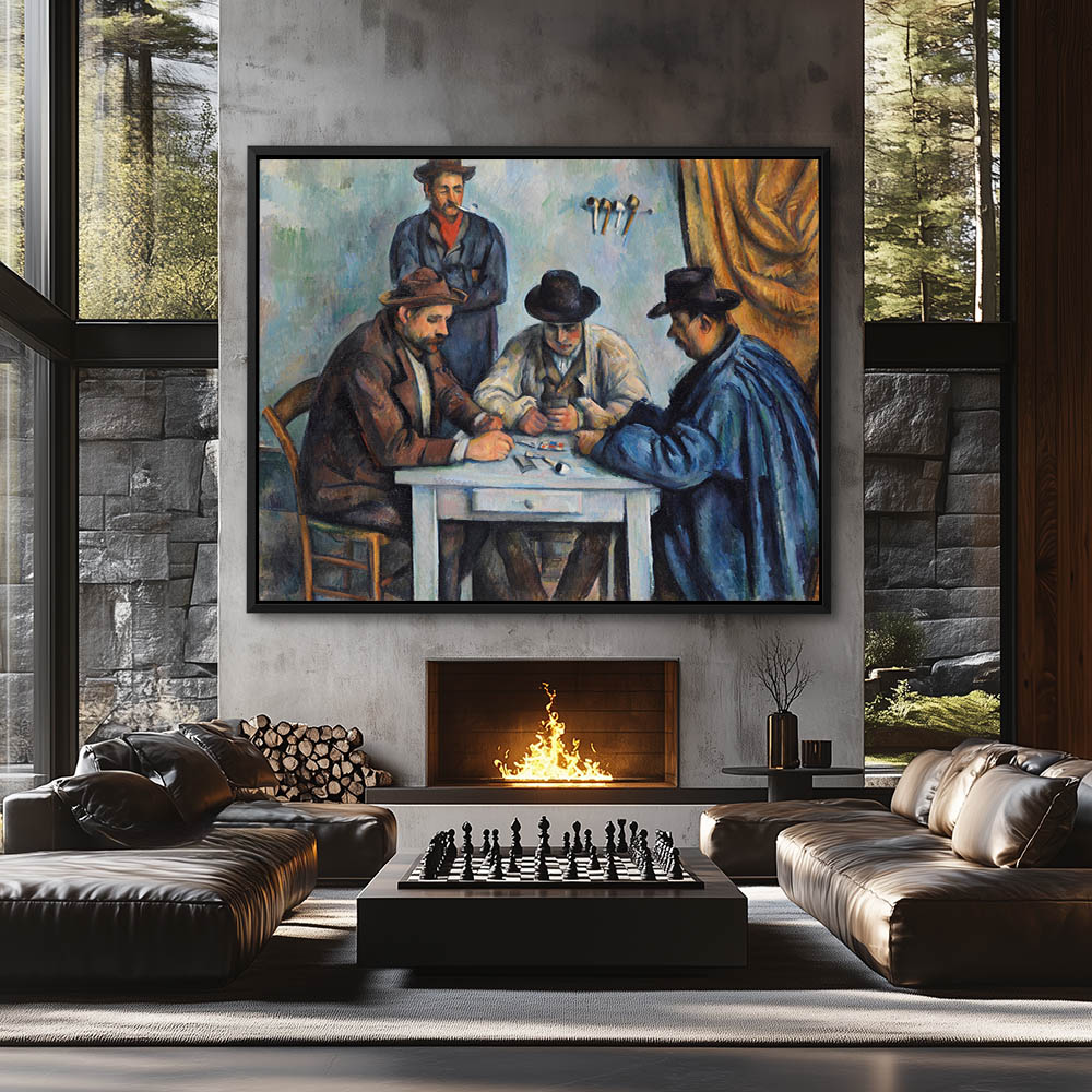 Vintage Figurative Painting with Three Men Playing Cards