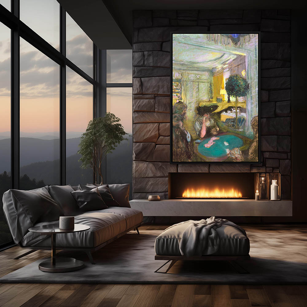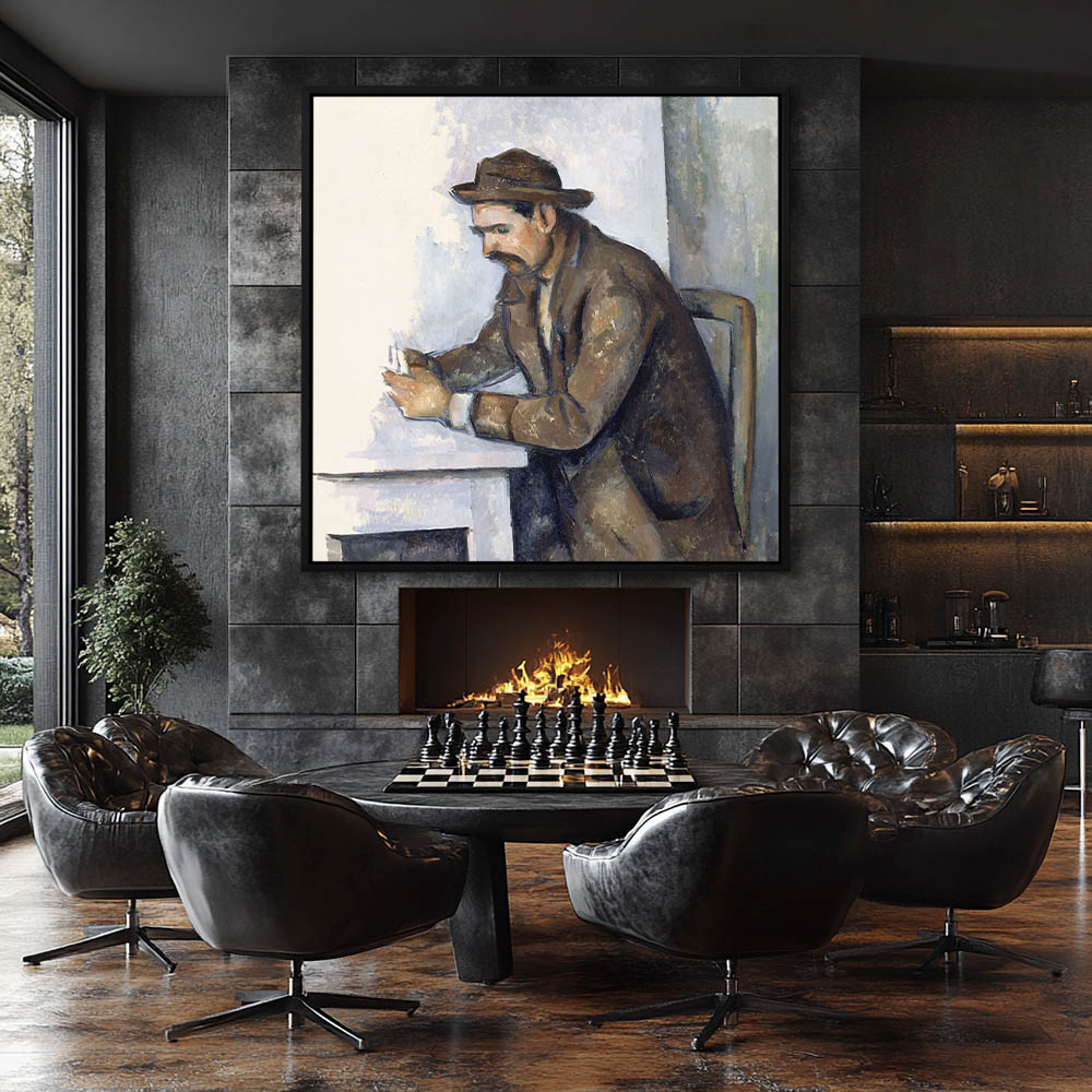 Vintage Figurative Painting with a Man Playing Cards