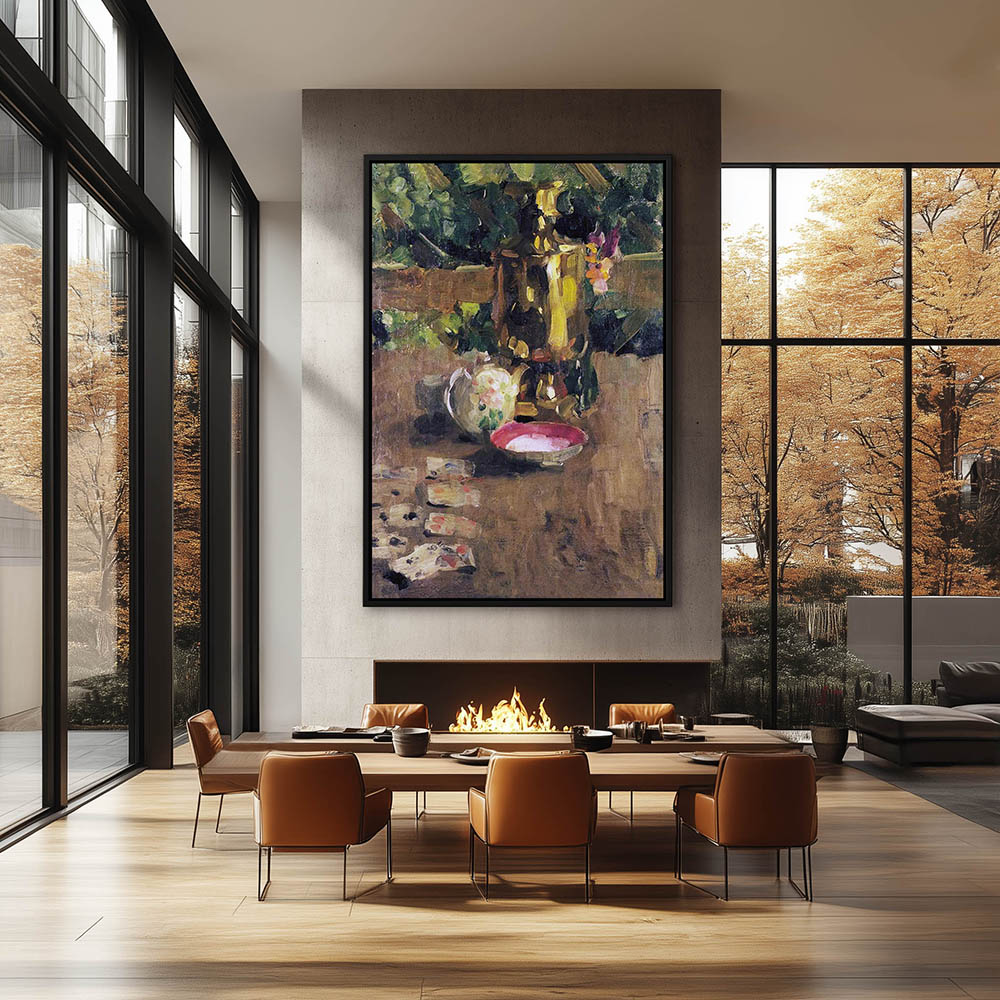 Still Life Painting with Cards and Tea Pot