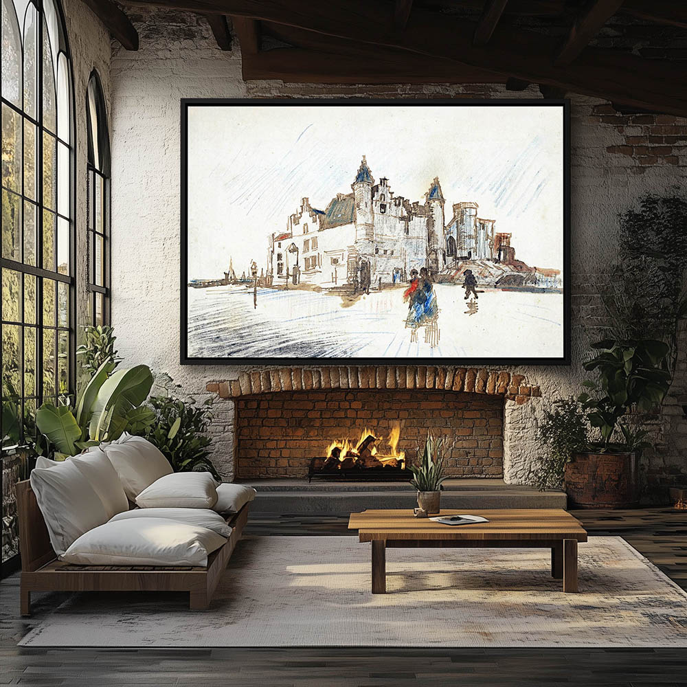 Landscape Painting with The Felino Castle near Parma and Two Figures