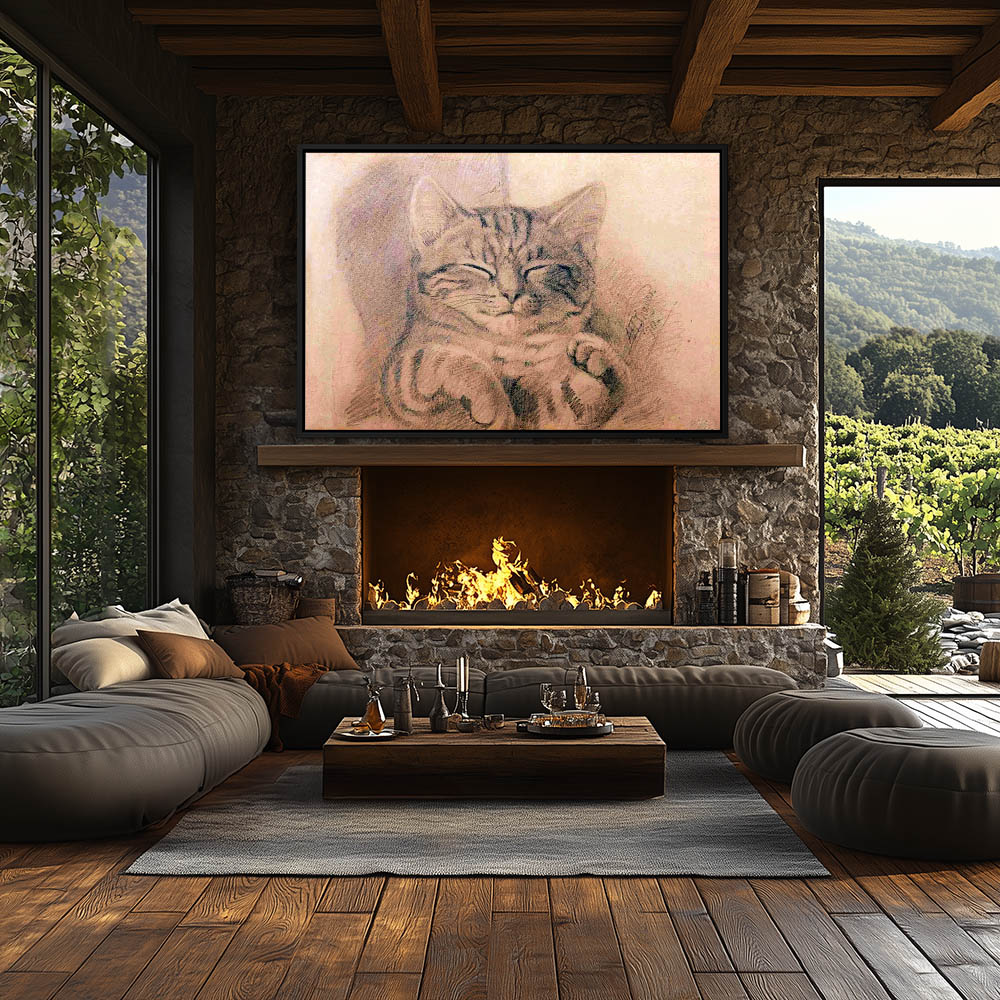 Vintage Cat Drawing with a Sleeping Cat