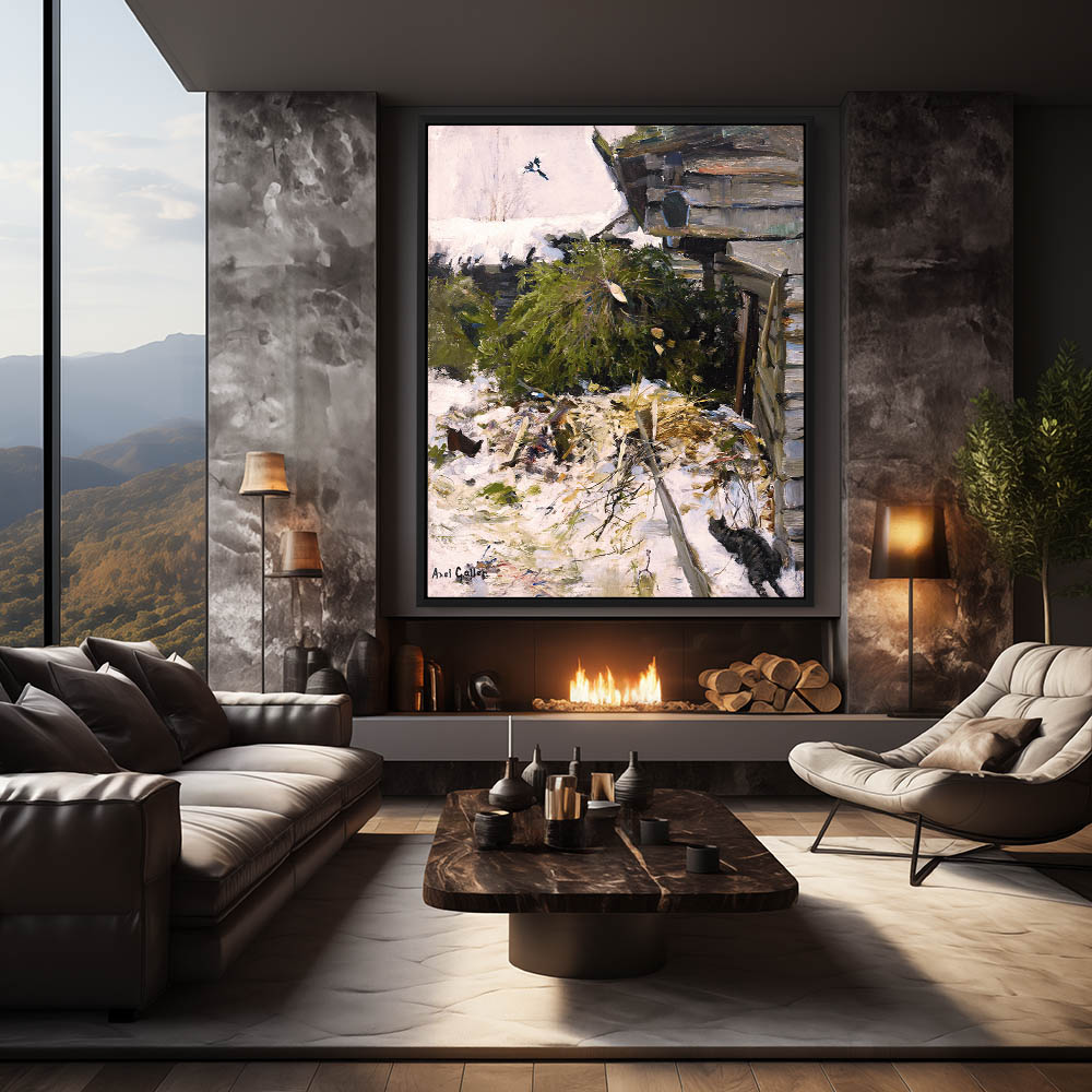 Landscape Painting of a Farmyard with Building and Cats