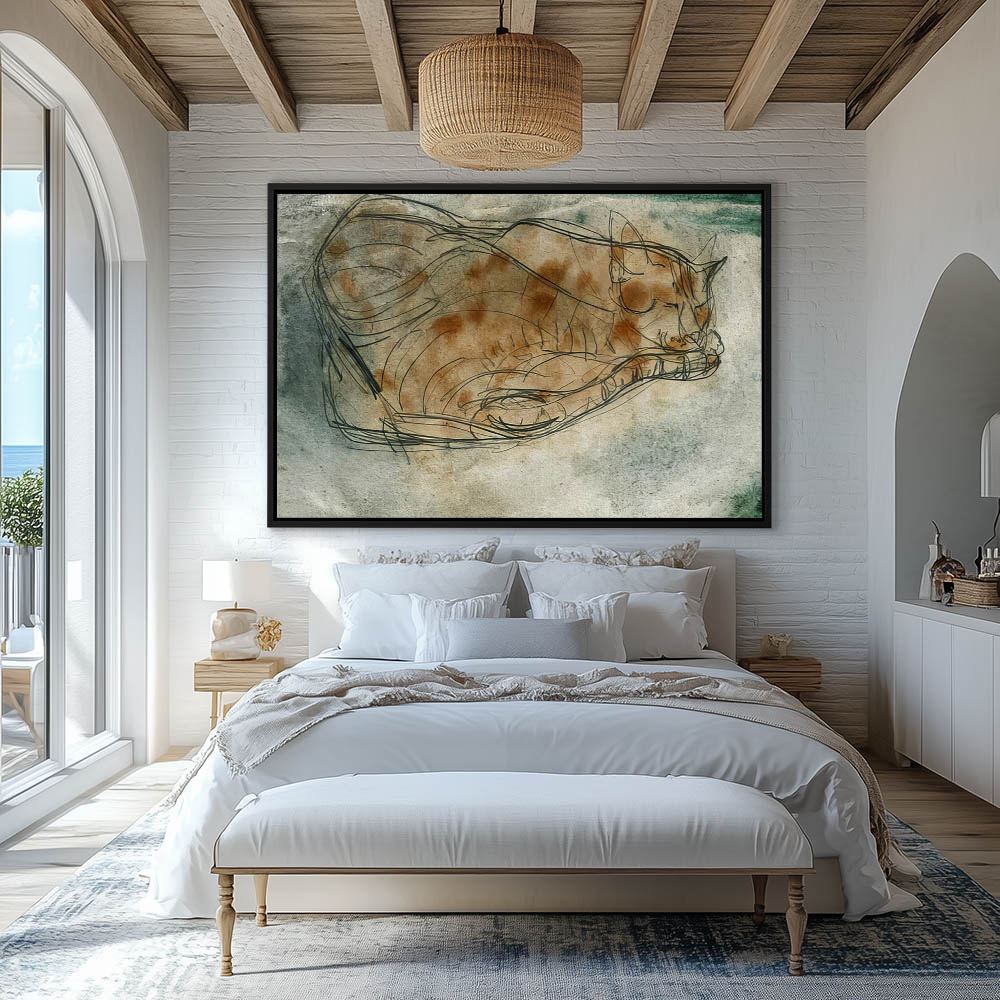 Drawing of a cat, curled up sleeping