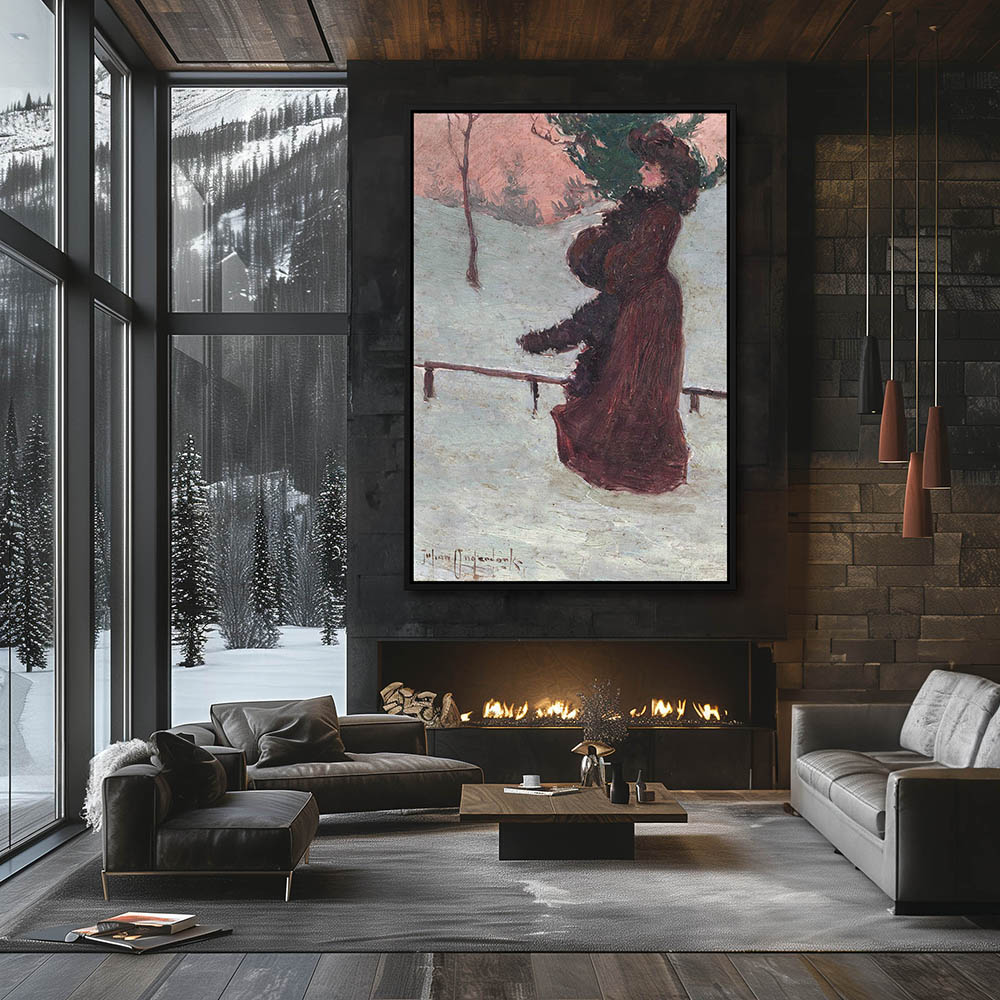Woman walking in Central Park in winter