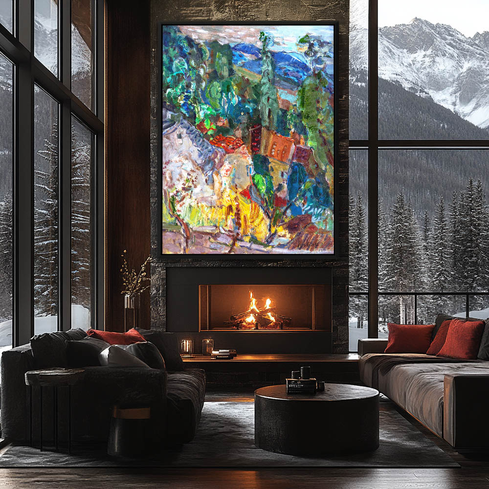 Abstract Landscape with a Village View with Cypress