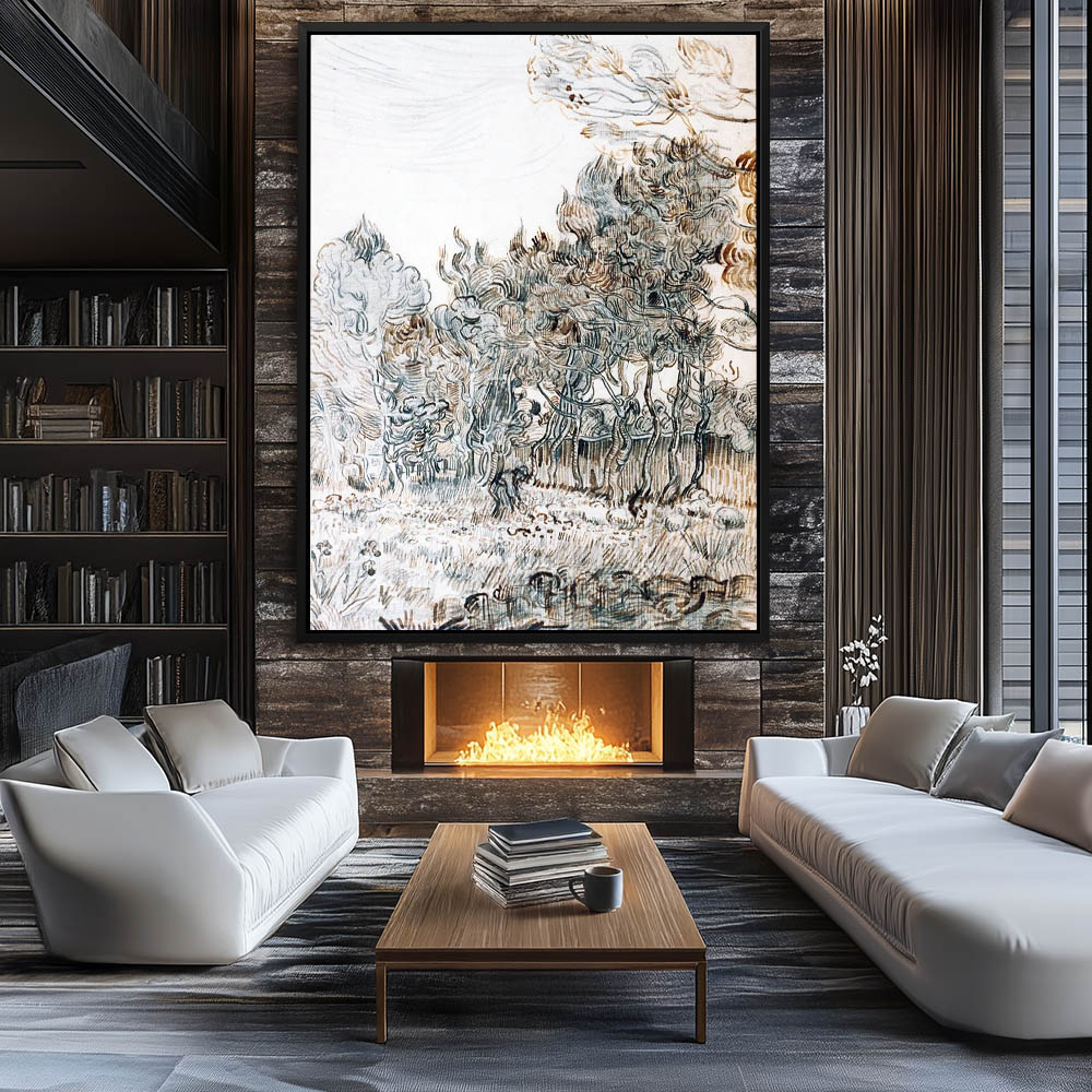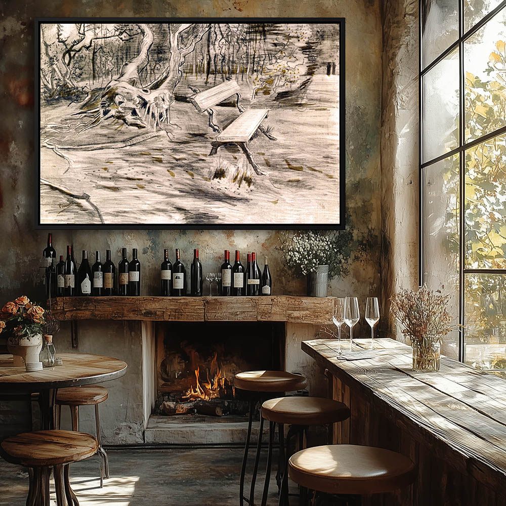 Landscape Drawing with a Garden with a Bench