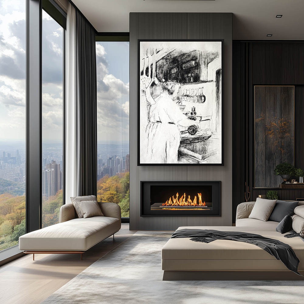 Abstract sketch of a woman cooking