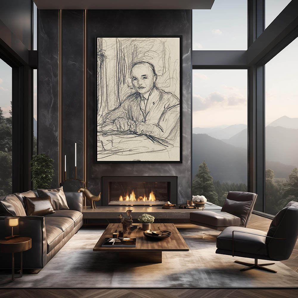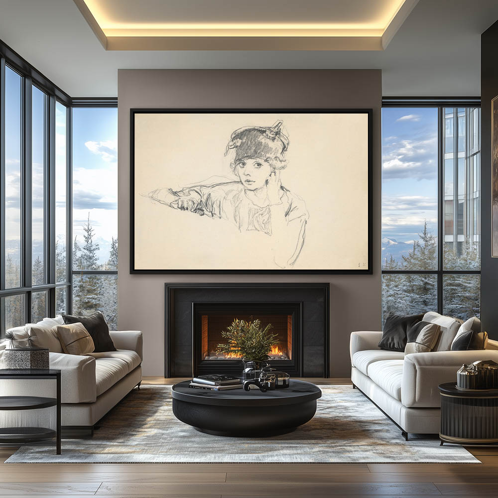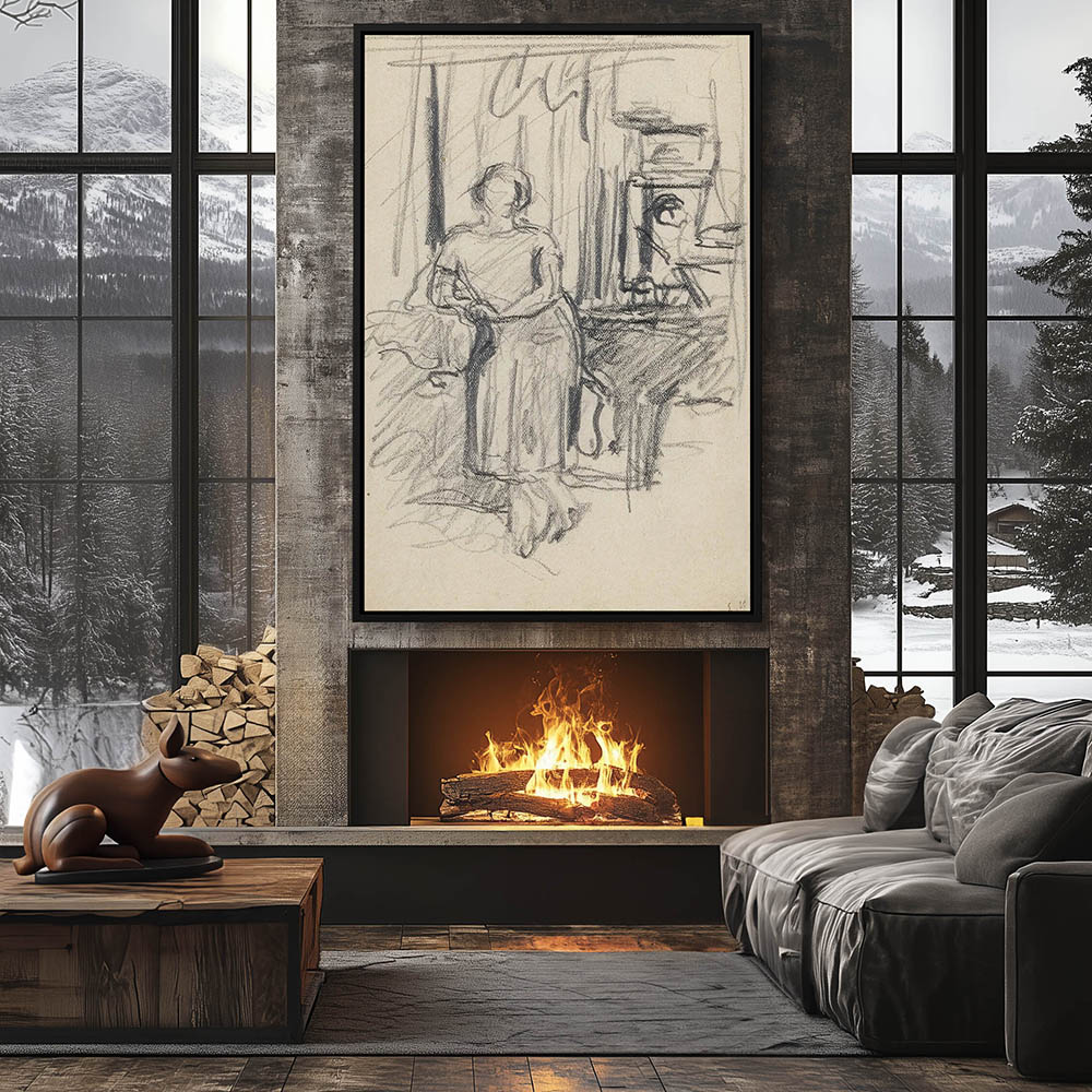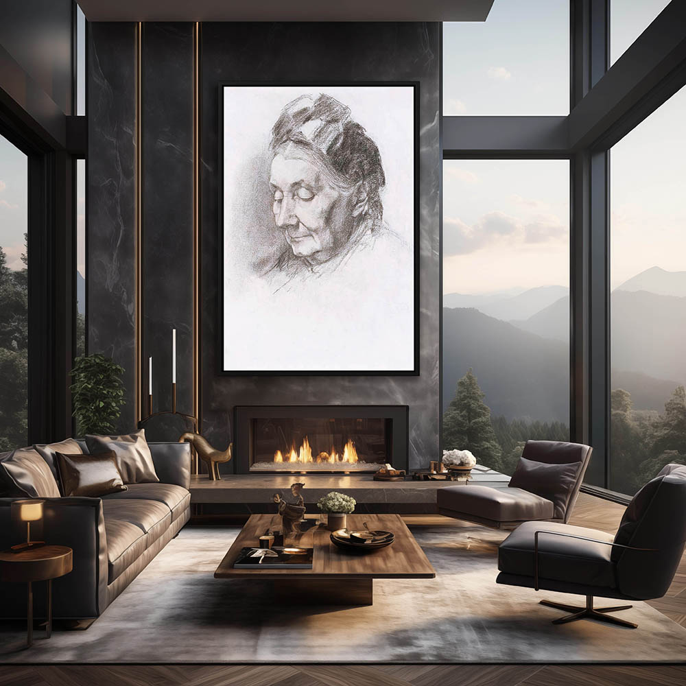 Drawing of the artists mother at 3/4 profile with eyes cast down