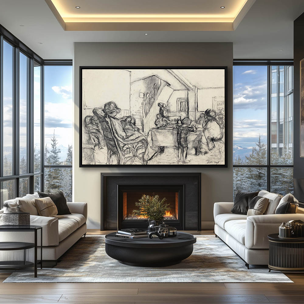 Sketch of an interior roon with several women and children