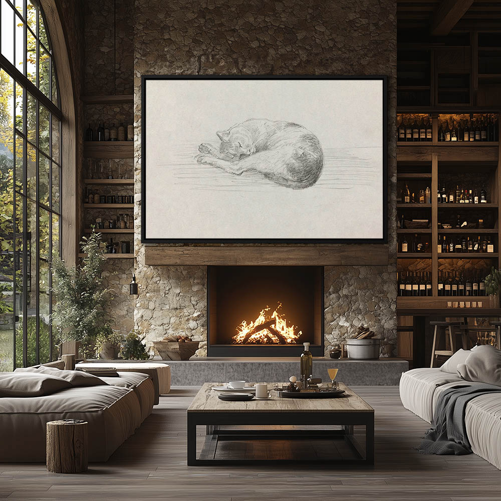 Drawing of a cat, curled up sleeping