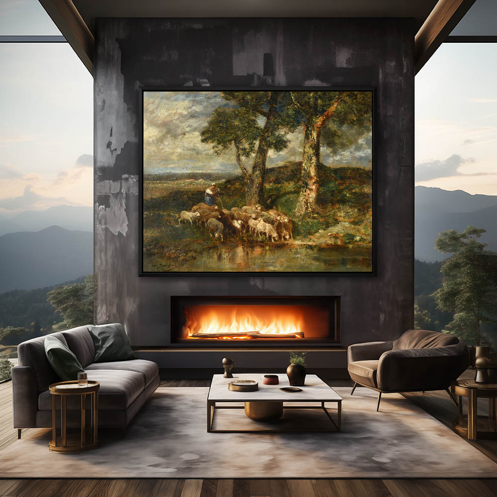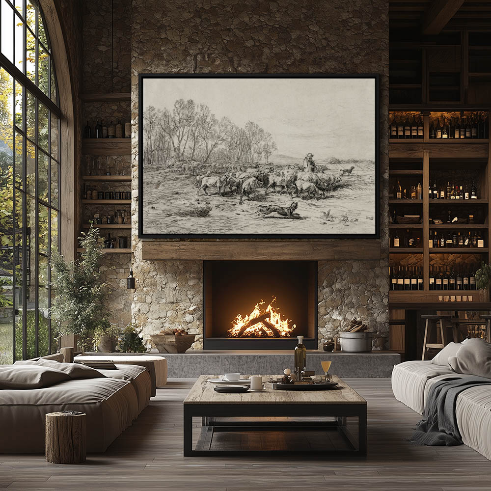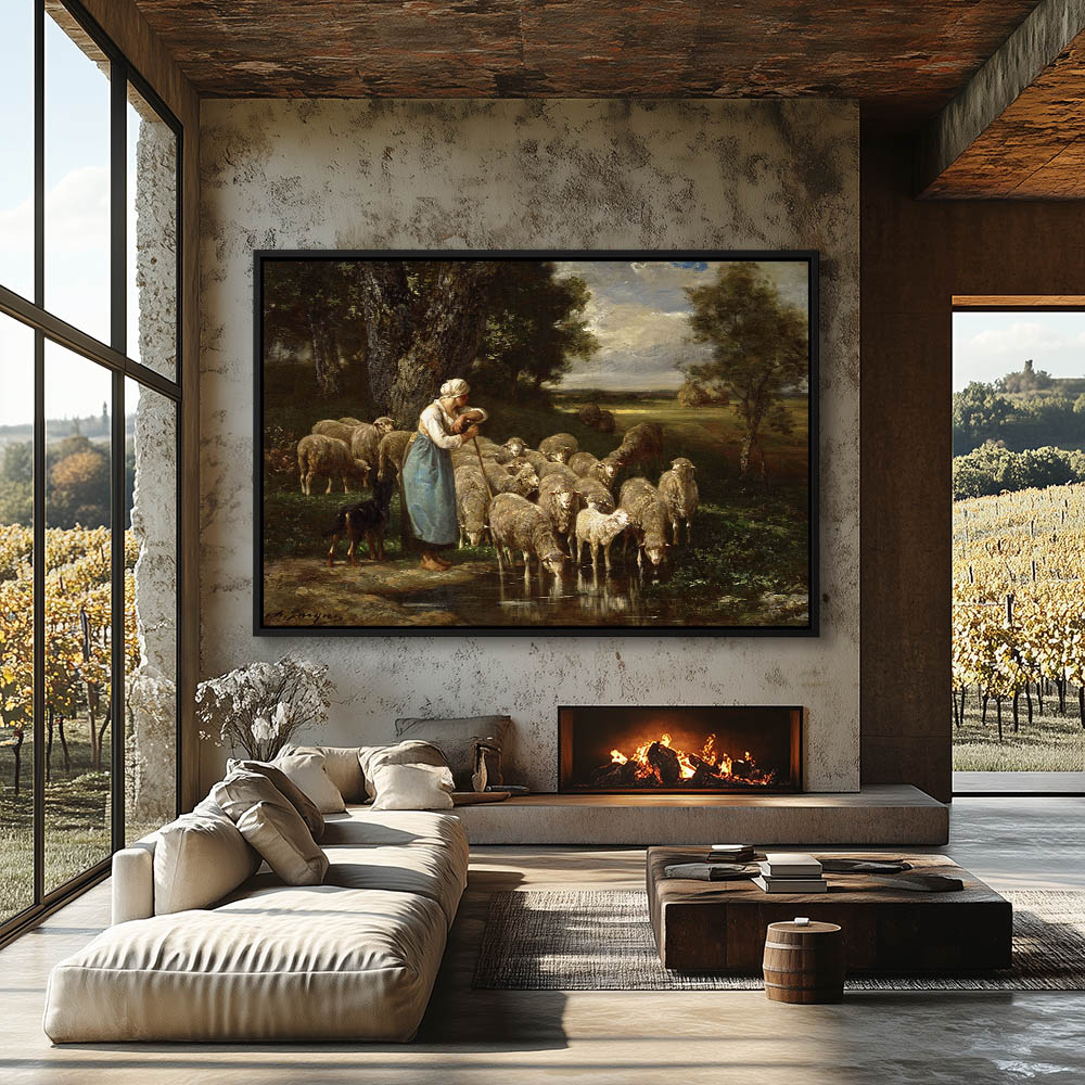 Two women in a farmyard, one washing by hand in a tub and the younger holding a basket, with chickens around.