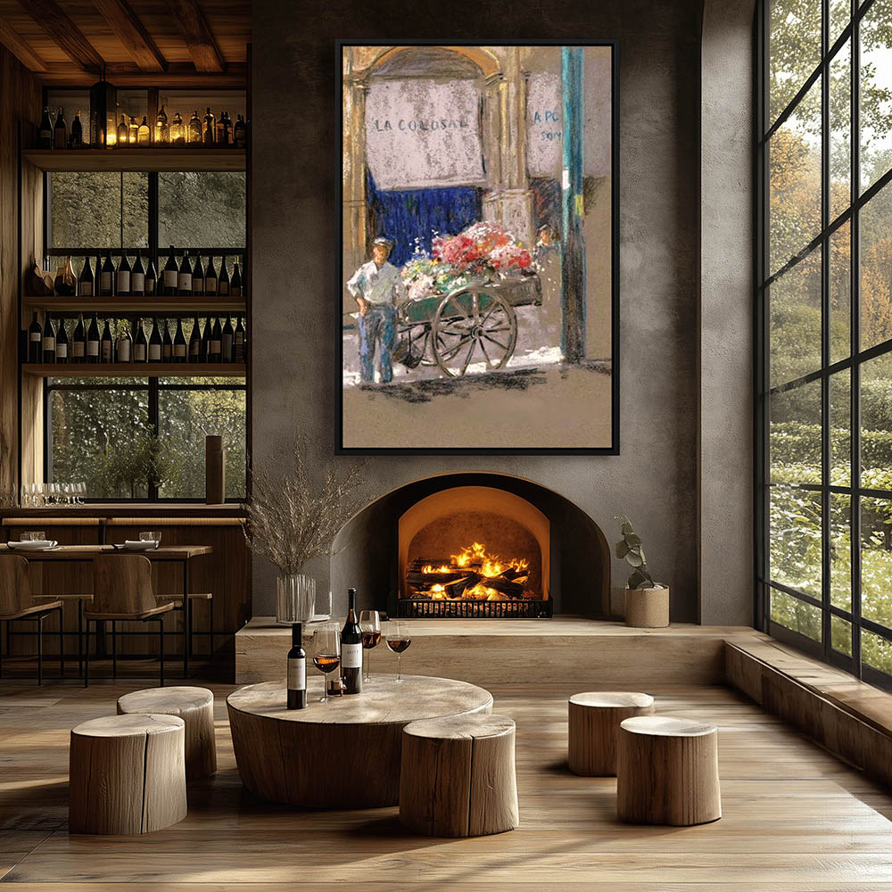 Vintage Figurative Painting of the Flower Vender on the Street