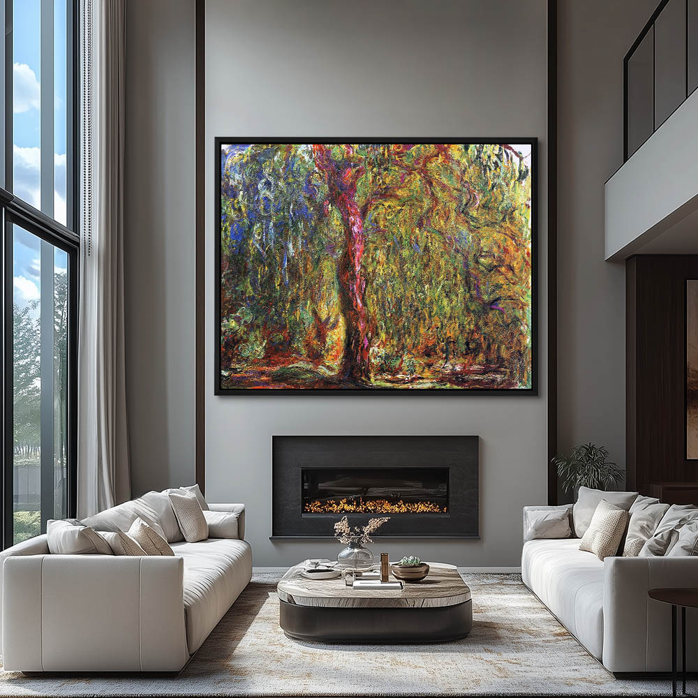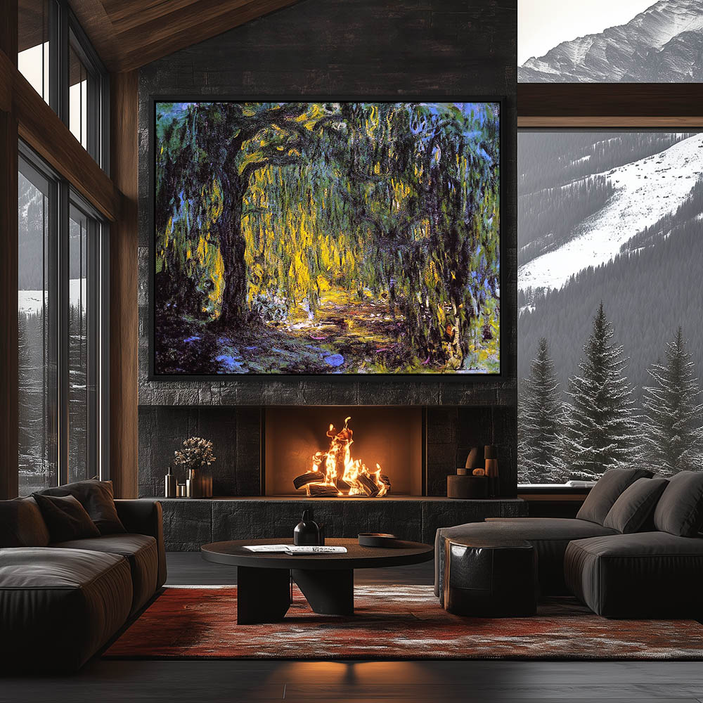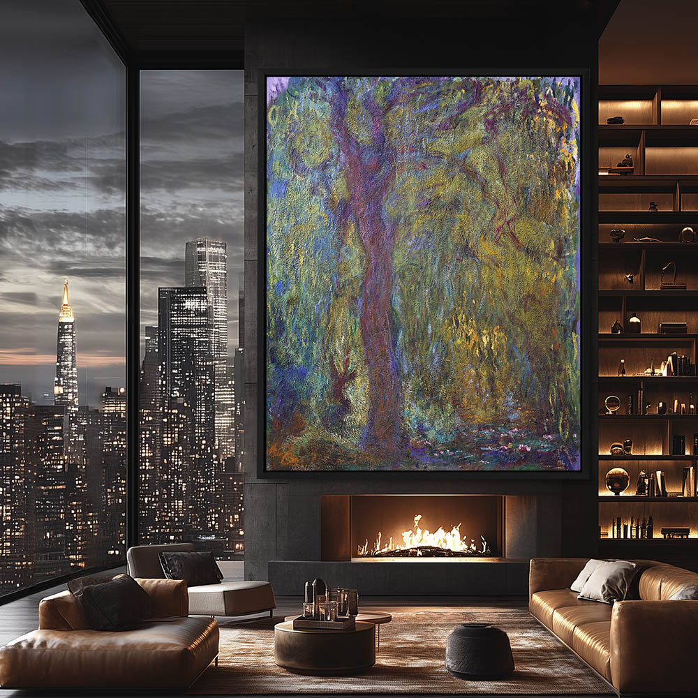 Vintage Landscape Painting of the Weeping Willow in the Garden in Giverny