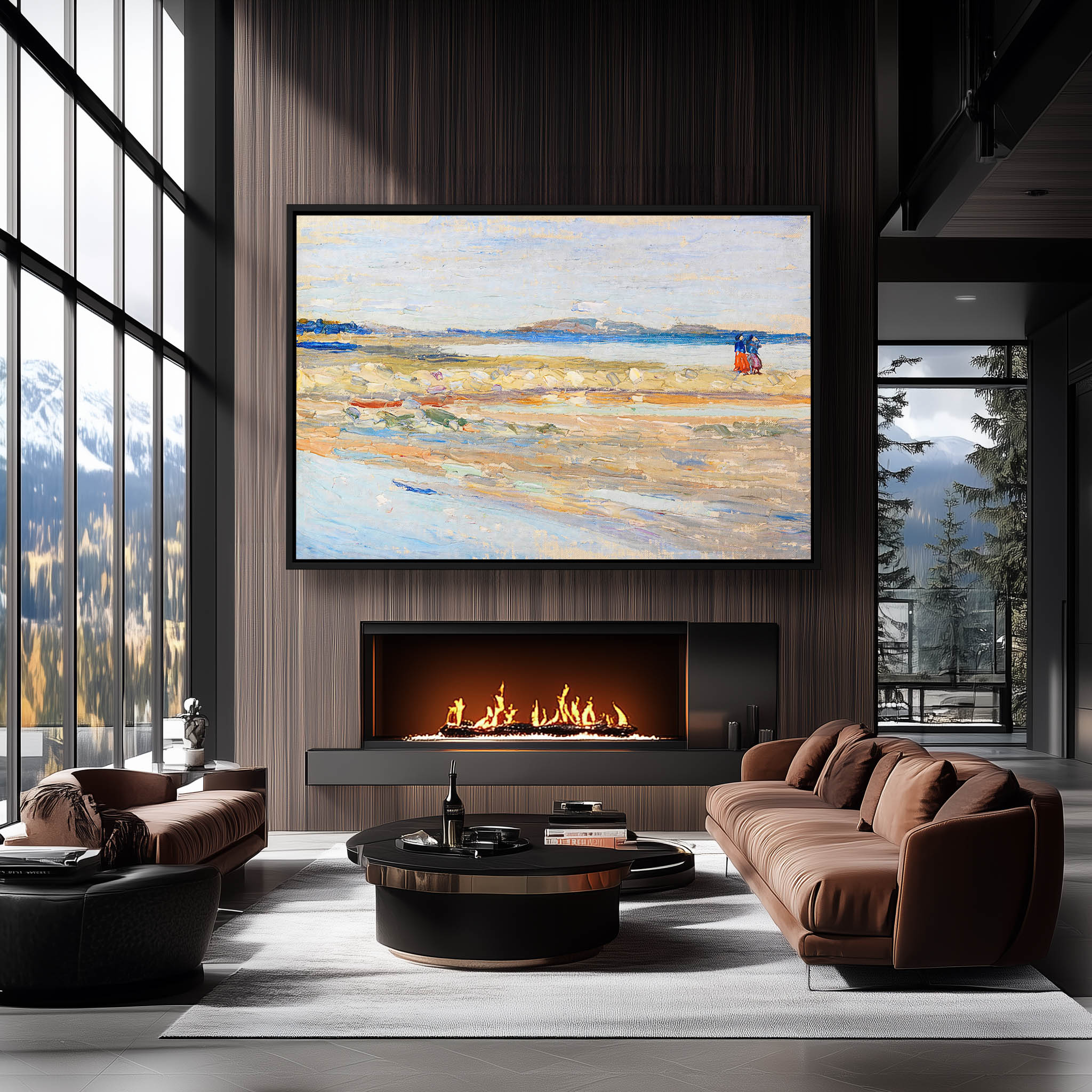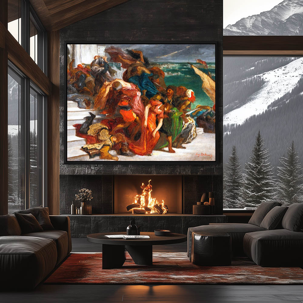 Vintage Figurative Painting with the Turks Taking Women from a Building near the Shore