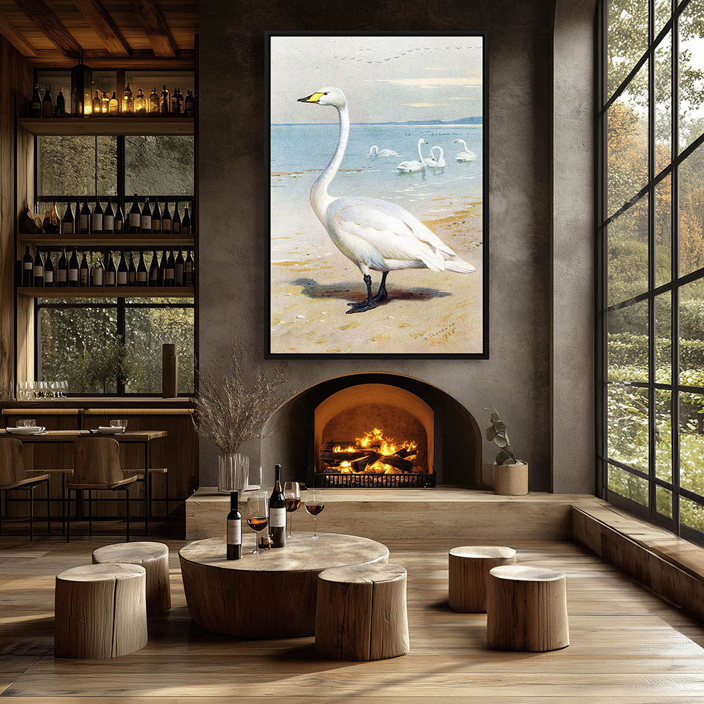 Painting of a Swan on the Shoreline