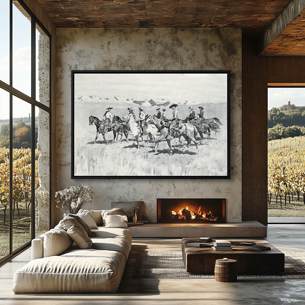Cowboys on horseback riding to the cattle herd