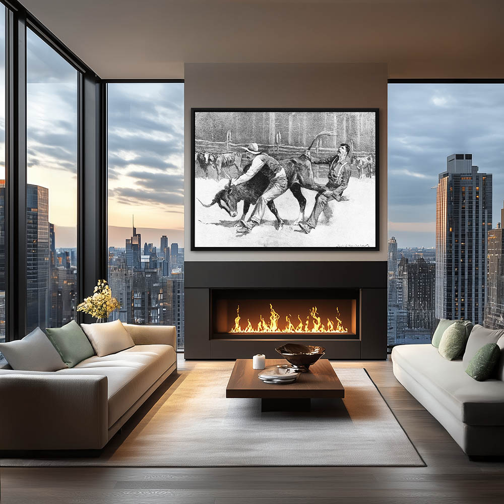 Cowboys wrestling a bull